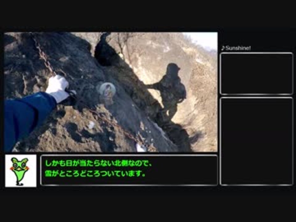 怖かった。<br>高所恐怖症の方は閲覧注意です。<br><br>前⇒蛭ヶ岳 <a href="https://www.nicovideo.jp/watch/sm34784406" class="watch">sm34784406</a><br>次⇒景山 <a href="https://www.nicovideo.jp/watch/sm35224214" class="watch">sm35224214</a><br><br>■使用機材<br>動画/ insta360 one X<br><span style="font-size: 13px;">写真/ LUMIX DMC-GX8</span><br>バッテリー/ Anker 20000mA