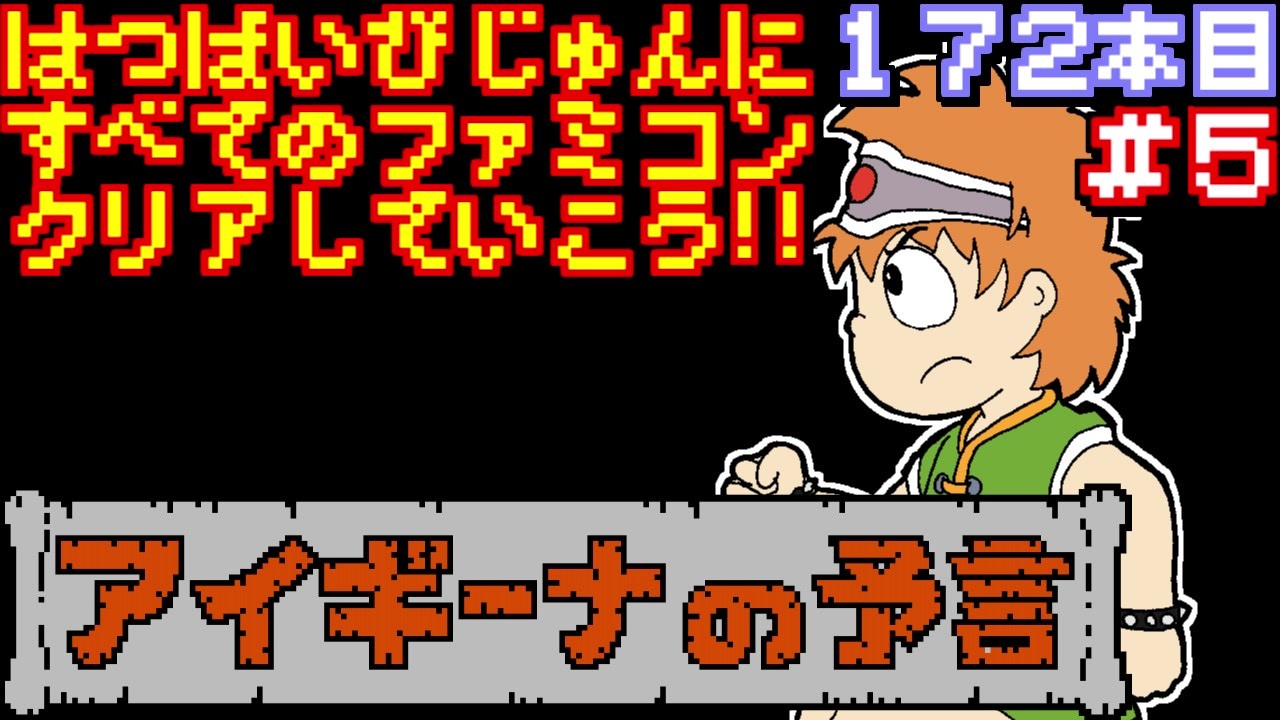 172本目 アイギーナの予言 クリア条件:EDを見る<br> <br><span style="color: #ff0000; font-size: medium;">発売日順に全てのファミコンソフトをクリアしていこう、という企画です。</span><br><br>1986年11月21日<br>ビック東海<br>アクション<br>アイギーナの予言 バルバルークの伝説より<br><span style="color: #ffffff;">検索用:ファミリーコンピュータ NES 実況プレイ動画 レトロゲーム アドベンチャー</span><br>■前回→<a href="https://www.nicovideo.jp/watch/sm34979964" class="watch">sm34979964</a><br>■次回→<a href="https://www.nicovideo.jp/watch/sm35040615" class="watch">sm35040615</a><br><br>■サムネのイラストはひでごんすさん→<a href="https://www.nicovideo.jp/user/3237582" target="_blank" rel="noopener">user/3237582</a><br /><br>◇◆じゅんくりマイリスト関連◆◇<br>■全じゅんくりマイリスト1→<a href="https://www.nicovideo.jp/mylist/67057947" target="_blank" rel="noopener">mylist/67057947</a><br>■全じゅんくりマイリスト2→<a href="https://www.nicovideo.jp/mylist/67057957" target="_blank" rel="noopener">mylist/67057957</a><br>■全じゅんくりマイリスト3→<a href="https://www.nicovideo.jp/mylist/72945068" target="_blank" rel="noopener">mylist/72945068</a><br>■じゅんくりpart1集→<a href="https://www.nicovideo.jp/mylist/67169410" target="_blank" rel="noopener">mylist/67169410</a><br>■1983年→<a href="https://www.nicovideo.jp/mylist/50525072" target="_blank" rel="noopener">mylist/50525072</a><br>■1984年→<a href="https://www.nicovideo.jp/mylist/50525168" target="_blank" rel="noopener">mylist/50525168</a><br>■1985年→<a href="https://www.nicovideo.jp/mylist/50525247" target="_blank" rel="noopener">mylist/50525247</a><br>■1986年→<a href="https://www.nicovideo.jp/mylist/50525642" target="_blank" rel="noopener">mylist/50525642</a><br>■1987年→<a href="https://www.nicovideo.jp/mylist/72895831" target="_blank" rel="noopener">mylist/72895831</a><br>■ディスクシステム→<a href="https://www.nicovideo.jp/mylist/50525822" target="_blank" rel="noopener">mylist/50525822</a><br>■番外編マイリスト→<a href="https://www.nicovideo.jp/mylist/67689092" target="_blank" rel="noopener">mylist/67689092</a><br><br>◇その他にーや。関連◇<br>■にーや。が語るだけ→<a href="https://www.nicovideo.jp/mylist/67575298" target="_blank" rel="noopener">mylist/67575298</a><br>■ファミコンカタログ→<a href="https://www.nicovideo.jp/mylist/67359834" target="_blank" rel="noopener">mylist/67359834</a><br>■YouTubeチャンネル→<a href="https://www.youtube.com/user/218niya0707" target="_blank" rel="noopener nofollow">https://www.youtube.com/user/218niya0707</a><br>■Twitter→<a href="https://twitter.com/famicom_ni_ya" target="_blank" rel="noopener nofollow">https://twitter.com/famicom_ni_ya</a><br>■企画詳細→ <a href="http://niya28.web.fc2.com/fc/gamelist.html" target="_blank" rel="noopener nofollow">http://niya28.web.fc2.com/fc/gamelist.html</a>