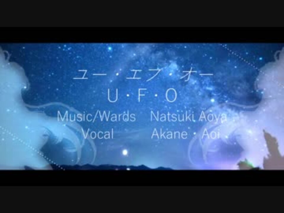 \寝る前に夜空でもいかがでしょう/<br><br>▫ Original:【初音ミクV3】UFO【オリジナル曲】/青屋夏生 <a href="https://www.nicovideo.jp/watch/sm22256262" class="watch">sm22256262</a><br>▫ ust :ララキネマ 様<br><br>▫ Vocal:VOICEROID2 琴葉茜&葵<br><br>▫ 調声:メイビィ [ <a href="https://www.nicovideo.jp/mylist/61532829" target="_blank" rel="noopener">mylist/61532829</a> ]<br>▫ Mix :kuRo [ <a href="https://www.nicovideo.jp/user/49077671" target="_blank" rel="noopener">user/49077671</a> ]<br><br>歌ボは9作目です。<br>前回のセルリアンブルー錯視症 <a href="https://www.nicovideo.jp/watch/sm35020813" class="watch">sm35020813</a><br>次回の 帝国少女 <a href="https://www.nicovideo.jp/watch/sm35047994" class="watch">sm35047994</a><br><br>琴葉茜 琴葉葵 (c) 2014 AI Inc..