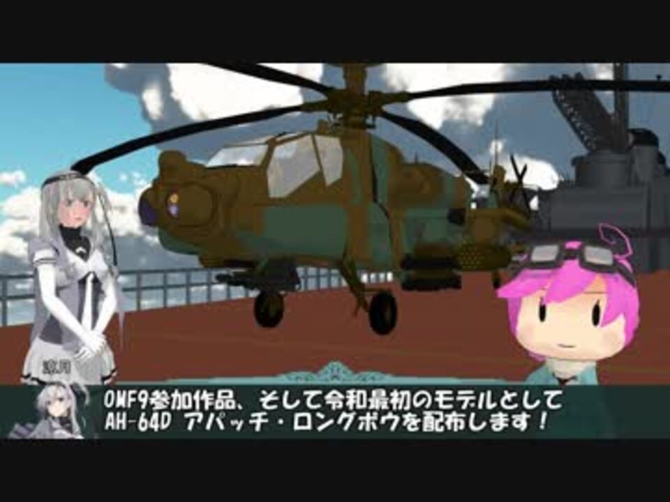 令和最初の配布モデルとして、AH-64D アパッチ・ロングボウ ver1.00を配布します。<br>専用ヘルメット配布しました!→<a href="https://seiga.nicovideo.jp/seiga/im9234278" target="_blank" rel="noopener">im9234278</a><br><br><span style="color: #000000; font-size: 14px;">パスワード並びに配布先はこちら↓</span><br><a href="http://corporalzurn.blogspot.com/2019/05/ah-64d-ver100.html" target="_blank" rel="noopener nofollow">http://corporalzurn.blogspot.com/2019/05/ah-64d-ver100.html</a><br><br>配布静画はこちら↓<br><a href="https://seiga.nicovideo.jp/seiga/im9220225" target="_blank" rel="noopener">im9220225</a><br><br><span style="color: #000000; font-size: 12px;">結城さまのMMDエンジンを搭載しています。<br>donburiroomさまの立ちくらみボーンをゆらぎボーンとして搭載しています。</span><br>【使い方】<br><span style="color: #000000; font-size: 12px;">まずは「揺れ幅1」X軸を5ほどずらして登録して、揺らぎの終了するフレームにて「揺れ速度」のY軸を若干(20ほど)ずらして登録して再生してみましょう。<br>donburiroomさまのブログ</span><br><a href="http://donburiroom.blog8.fc2.com/blog-entry-150.html" target="_blank" rel="noopener nofollow">http://donburiroom.blog8.fc2.com/blog-entry-150.html</a><br><br><br><br><span style="color: #000000; font-size: 14px;">高画質版:</span><span style="color: #167ac6; font-size: 11px;"><a href="https://youtu.be/q6otziF5v3Q" target="_blank" rel="noopener nofollow">https://youtu.be/q6otziF5v3Q</a></span><br><span style="color: #000000; font-size: 14px;">ブログ:</span><span style="color: #006699; font-size: 14px;"><a href="http://corporalzurn.blogspot.jp/" target="_blank" rel="noopener nofollow">http://corporalzurn.blogspot.jp/</a></span><br><span style="color: #000000; font-size: 14px;">ツイッター:@yutaka142</span><br>14,600pts分の広告いただきました!ありがとうございます!<br><br>令和最初の配布モデルにしてOMF9参加モデルとなります。<br>天皇弥栄!<br />メロンブックス様で下記同人誌を委託中であります。ご興味ありましたらごらんくださいませ。<br><br><br>マンガ『艦これil-2 E1~E5』<br>艦これil-2のさらに外伝的な漫画です。妖精さんたちが大活躍します!ボクカワウソも出るよ!<br><br>艦これil-2 パラオ泊地車両名鑑1、舟艇名鑑1<br>艦これil-2 パラオ泊地小火器名鑑1,2 16P<br>オールカラーイラストのパラオ泊地の艦娘と妖精の銃器、車両、舟艇のイラスト本です。<br><br>『艦これil-2 パワハラ会議編』<br>新刊が出せなかった伍長が由良さんに詰められるお話です。<br>どっかできいたような。<br><br>『艦これil-2 ガイドブック 第一艦隊・第二・第三艦隊』<br>艦これil-2のガイドブックとなっております。動画鑑賞のお供に!<br><br>『MMD本三種類、動画編集』<br>MMDの始め方、応用編、モデル作成編の3冊に動画編集のハウツー本です。これであなたもMMDer!<br><br>艦これil-2 マイリスト→<a href="https://www.nicovideo.jp/mylist/44105882" target="_blank" rel="noopener">mylist/44105882</a><br>艦これil-2静画編→<a href="https://seiga.nicovideo.jp/clip/1861721" target="_blank" rel="noopener">clip/1861721</a> <br>配布中のMMDモデル→<a href="https://seiga.nicovideo.jp/clip/1829677" target="_blank" rel="noopener">clip/1829677</a><br><br><span style="color: #000000; font-size: 14px;">ブログ:</span><span style="color: #006699; font-size: 14px;"><a href="http://corporalzurn.blogspot.jp/" target="_blank" rel="noopener nofollow">http://corporalzurn.blogspot.jp/</a></span><br><span style="color: #000000; font-size: 14px;">ツイッター:@yutaka142</span>