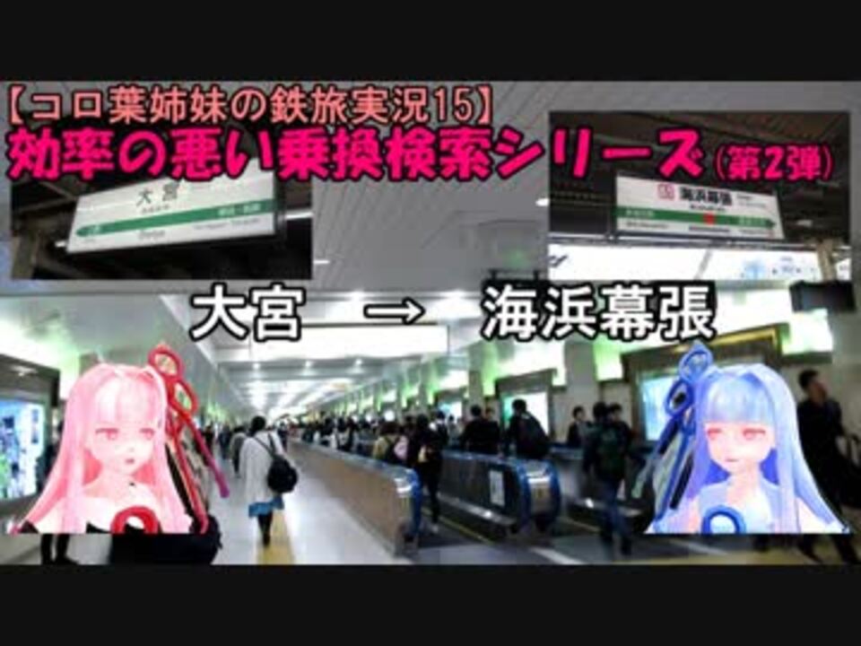 こんにちは、コロりっく(ちっちゃいP)です<br>乗換検索で出てきたおかしいと思われるルートで敢えて行ってみる<strong>「効率の悪い乗換検索」シリーズ</strong>の第2弾です<br>(第1弾は→<a href="https://www.nicovideo.jp/watch/sm34451994" class="watch">sm34451994</a>)<br><br>今回は、<strong>大宮→海浜幕張</strong>です<br><br><br><br>(撮影日2019.4.28)<br>YouTube版→<span style="color: #167ac6; font-size: 11px;"><a href="https://youtu.be/bKY3Q9eE0Y0" target="_blank" rel="noopener nofollow">https://youtu.be/bKY3Q9eE0Y0</a></span><br>鉄旅実況シリーズ→<a href="https://www.nicovideo.jp/mylist/60783999" target="_blank" rel="noopener">mylist/60783999</a> <br>トークロイドシリーズ→<a href="https://www.nicovideo.jp/mylist/32070848" target="_blank" rel="noopener">mylist/32070848</a><br>読ム-1グランプリ→<a href="https://yomu1.netlify.com/" target="_blank" rel="noopener nofollow">https://yomu1.netlify.com/</a><br><br>この動画で出てきた動画→<a href="https://www.nicovideo.jp/watch/sm34888411" class="watch">sm34888411</a> <a href="https://www.nicovideo.jp/watch/sm33013064" class="watch">sm33013064</a> <a href="https://www.nicovideo.jp/watch/sm34594225" class="watch">sm34594225</a> <a href="https://www.nicovideo.jp/watch/sm34646252" class="watch">sm34646252</a> <a href="https://www.nicovideo.jp/watch/sm34188521" class="watch">sm34188521</a> <a href="https://www.nicovideo.jp/watch/sm34884339" class="watch">sm34884339</a> <a href="https://www.nicovideo.jp/watch/sm33638212" class="watch">sm33638212</a>