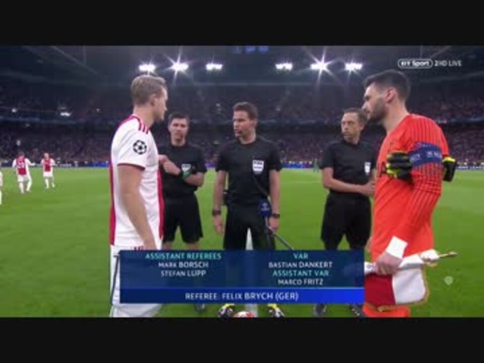 2019年5月8日、ヨハン・クライフ・アレナ。主審:フェリックス・ブリッヒ(ドイツ)。<br>1stレグ(<a href="https://www.nicovideo.jp/watch/sm35056821" class="watch">sm35056821</a>)→ 0-1でアヤックス。<br>(0~) 直前番組から(クライフ特集)<br>(4分13秒~)入場・アンセム・選手紹介<br>(6分35秒~)ホイッスル<br><br>試合後 → <a href="https://www.nicovideo.jp/watch/sm35098052" class="watch">sm35098052</a> (動画終了後、自動でスキップします)<br><br>・激闘だったこの試合をフルマッチで見たい方は → <a href="https://www.nicovideo.jp/watch/sm35097855" class="watch">sm35097855</a><br><br>※もう一つのCLベスト4(準決勝)<br>【第1戦】<br>バルセロナ vs リヴァプール(2019年5月1日)→ <a href="https://www.nicovideo.jp/watch/sm35062268" class="watch">sm35062268</a><br>【第2戦】<br>リヴァプール vs バルセロナ(2019年5月7日)→ <a href="https://www.nicovideo.jp/watch/sm35095171" class="watch">sm35095171</a><br>