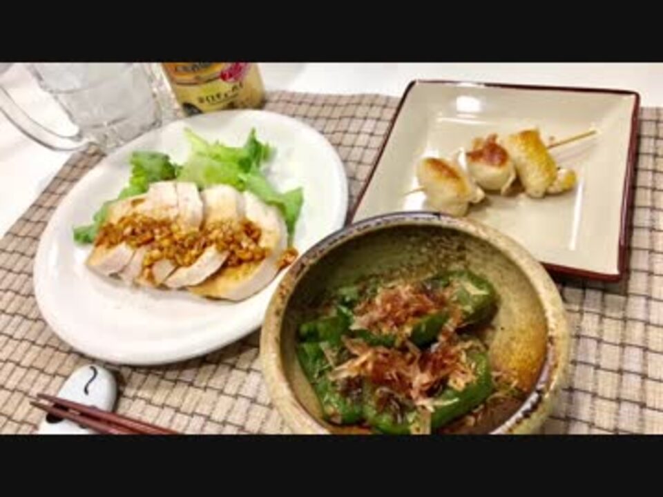 ご無沙汰しております。今回は、とりあえずお酒が飲みたくなったので何時もながらのおつまみを3品ほどご用意しました。最近急に暑くなってきましたので、さっぱり且つスタミナの付くものを作ってみました。調理の段取りも出来るだけ簡略化し、手軽に出来ますので是非お試し下さい。令和も飲んで呑みまくる。<br><span style="color: #333333; font-size: 13px;">お借りしたBGM:<a href="https://commons.nicovideo.jp/works/nc147579" target="_blank" rel="noopener">nc147579</a><br><br>前(喫茶ポアロのミルクトマト煮)→<a href="https://www.nicovideo.jp/watch/sm34953654" class="watch">sm34953654</a><br>次(2〜3週間後くらいに)→<br>料理動画マイリス</span><span style="color: #099ef9; font-size: 13px;"><a href="https://www.nicovideo.jp/mylist/58175956" target="_blank" rel="noopener">mylist/58175956</a></span>