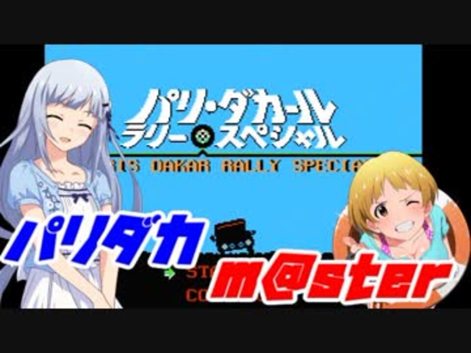 FC「パリ・ダカールラリー・スペシャル」×アイマスの動画です。<br><b><font color=red>※ダカールラリーを忠実に再現したゲームですが、<br>実際のダカールラリーとは何ら、関係ございません</b></font><br><br>次→<a href="https://www.nicovideo.jp/watch/sm35203001" class="watch">sm35203001</a><br>その他作ったもの→<a href="https://www.nicovideo.jp/mylist/56535805" target="_blank" rel="noopener">mylist/56535805</a><br><br>今年もやってきたパリダカの季節<br>今回は紬とのり子ペアで参加することとなり…<br><br><b>・4WDとスポーツカー</b><br>どちらも500万で買えます。<br>今回は4WDを選びました。<br>多くのサイトなどで、見た目が変わるだけとされてますが<br>それは間違いです。詳しくは後編で<br><br><b>・エセ金沢弁</b><br>申し訳ございません。雰囲気でご覧ください<br><br><b>【ニコニ広告ありがとうございます!】</b><br>糸冬P、もけけさん、ふく餅マンさん、クリム・スタインベルトさん、トックリバチさん<br>綾瀬夕映AWNP、あたりめさん、ベル=フライさん、b-doloさん、もんもんさん<br>Yussoさん、にぼしさん、のぐずさん、Gペッシさん、muraさん、こたたさん<br>906さん、笑い生活二十四時さん、aaaaaさん、canさん、飛鷹さん、fujinamiさん<br>吉原炎上さん、talkさん、kumoriさん、しんくんさん、キドオリゾノさん<br>あたみさん、ぱかちょさん、PEPPERさん、たけやぶP、ぴらみCF条件達成ソロCD決定さん<br>ジストさん、さるまたさん<br>