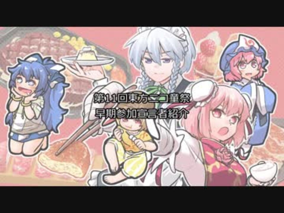 お待たせいたしました。第11回東方ニコ童祭告知動画第2弾となります。<br>こちらの動画では各企画の紹介と、早期参加宣言をして下さった方々の紹介を行っています!<br><br>告知動画後半は早期参加宣言紹介パート。数多の動画投稿者の熱いアピールをどうぞご堪能あれ。<br><br>また、別動画となる前半の企画紹介パートはナックルズ×90様(<a href="https://www.nicovideo.jp/user/40239838" target="_blank" rel="noopener">user/40239838</a>)にご制作頂きました! そちらの動画も是非ご覧ください。<br><br><font color="blue" size="3">前半:企画紹介→<a href="https://www.nicovideo.jp/watch/sm35128952" class="watch">sm35128952</a></font><br><br>【企画名】第11回東方ニコ童祭<br>【催事内容】東方Projectオンリー動画投稿祭<br>【開催期間】2019年7月5日(金) 21時00分 ~ 7月7日(日)24時00分<br><br>【東方ニコ童祭公式サイト】<a href="https://nicodosai.com/" target="_blank" rel="noopener nofollow">https://nicodosai.com/</a><br>【第11回特設ページ】<a href="http://nicodosai.com/11th/" target="_blank" rel="noopener nofollow">http://nicodosai.com/11th/</a><br><br>【参加宣言】<a href="http://nicodosai.com/11th/join/what" target="_blank" rel="noopener nofollow">http://nicodosai.com/11th/join/what</a><br>【ED絵募集】<a href="http://nicodosai.com/11th/event/ed" target="_blank" rel="noopener nofollow">http://nicodosai.com/11th/event/ed</a><br><br>【東方新作の取り扱いについて】 <a href="https://nicodosai.com/11th/notice" target="_blank" rel="noopener nofollow">https://nicodosai.com/11th/notice</a><br><br>開催告知動画→<a href="https://www.nicovideo.jp/watch/sm34924484" class="watch">sm34924484</a><br><br>コミュニティ:co287151<br>Twitter:@nicodosai<br>マイリスト:<a href="https://www.nicovideo.jp/mylist/44023992" target="_blank" rel="noopener">mylist/44023992</a> <a href="https://www.nicovideo.jp/mylist/65269752" target="_blank" rel="noopener">mylist/65269752</a><br>