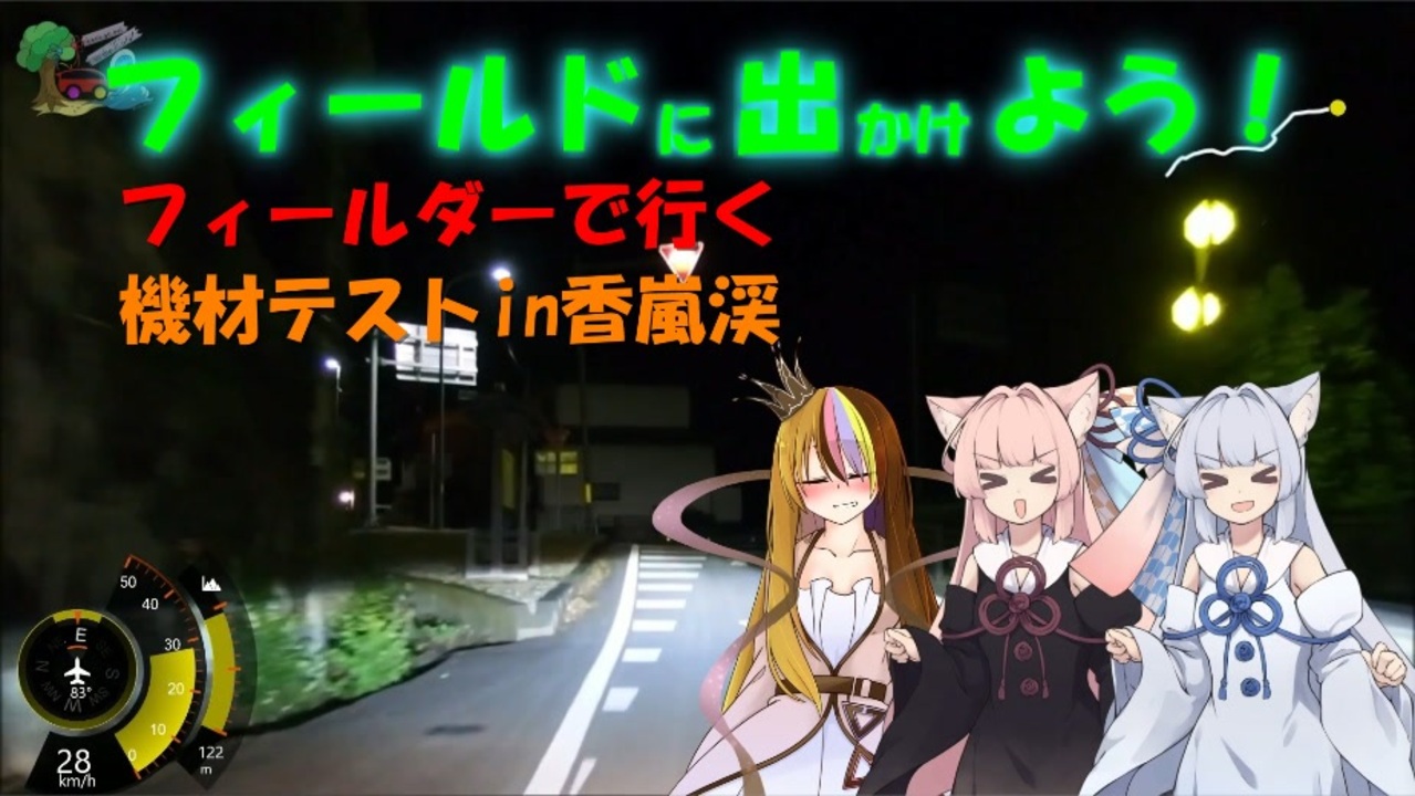 急きょ今回もカメラテストです<br>前回と同じ時間帯で同じコースです<br>前よりはブレを抑えられてる感じがするので<br>今後は夜ドライブで使っていこうかなと思います<br><br>画面の追加メーターはサイクルコンピューターの走行ログを表示させてみました<br>今回は表示してませんが勾配なんかも表示できるので<br>酷道や険道とかで斜度のキツイ場所の状況を詳しく伝えられるかも?<br><br>※本動画は倍速編集を入れており、実際の速度とは異なる場合があります <br><br>【フィールドに出かけよう!】:<a href="https://www.nicovideo.jp/mylist/61562901" target="_blank" rel="noopener">mylist/61562901</a> <br><a href="https://www.nicovideo.jp/watch/sm35119513" class="watch">sm35119513</a>←前 次→どこに行きましょう <br><br><span style="color: #000000; font-size: 13px;">【週刊ボイロ車載】:<a href="https://www.nicovideo.jp/mylist/64433306" target="_blank" rel="noopener">mylist/64433306</a></span><br><br>【フィールドに出かけたよ!】:<a href="https://www.nicovideo.jp/mylist/63967605" target="_blank" rel="noopener">mylist/63967605</a> <br><a href="https://www.nicovideo.jp/watch/sm34243305" class="watch">sm34243305</a>←前 次→どこに行きましょう <br><br>立ち絵はコチラ <br>ゆかりさん:<a href="https://seiga.nicovideo.jp/seiga/im8056126" target="_blank" rel="noopener">im8056126</a><br>マキさん:<a href="https://seiga.nicovideo.jp/seiga/im6845067" target="_blank" rel="noopener">im6845067</a><br>ずんちゃん:<a href="https://seiga.nicovideo.jp/seiga/im8043526" target="_blank" rel="noopener">im8043526</a><br>あかりちゃん:<a href="https://seiga.nicovideo.jp/seiga/im8920111" target="_blank" rel="noopener">im8920111</a> / <a href="https://seiga.nicovideo.jp/seiga/im8965243" target="_blank" rel="noopener">im8965243</a><br>茜ちゃん、葵ちゃん:<a href="https://seiga.nicovideo.jp/seiga/im8204989" target="_blank" rel="noopener">im8204989</a> / <a href="https://seiga.nicovideo.jp/seiga/im9292778" target="_blank" rel="noopener">im9292778</a><br>ギャラ子さん:<a href="https://seiga.nicovideo.jp/seiga/im8445400" target="_blank" rel="noopener">im8445400</a><br><br>Twitter:@ACfA_thinker
