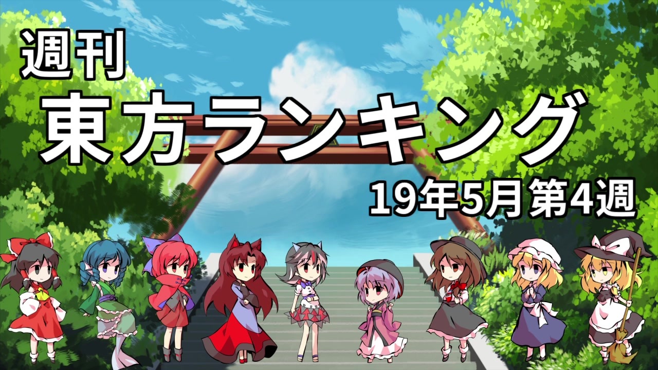 東方鬼形獣のネタバレを含む動画がランクインする場合があります。<br>ネタバレを避けたい方はご注意ください。<br>========================<br>第11回東方ニコ童祭<br>詳細:<a href="https://nicodosai.com/11th/" target="_blank" rel="noopener nofollow">https://nicodosai.com/11th/</a><br>========================<br><br>アイキャッチは「東方動画イラスト支援」タグからお借りしております。(詳細は大百科記事をご確認ください)<br>■2019年05月16日(木)AM05:00~2019年05月23日(木)AM05:00<br><br>■プレイリスト [<a href="https://www.nicovideo.jp/mylist/65658057" target="_blank" rel="noopener">mylist/65658057</a>](公開期間:2ヶ月、公開期間後は大百科の動画記事をご確認ください。)<br>■エンドカード 岡山工場(inpipo)様 (<a href="https://seiga.nicovideo.jp/seiga/im9142749" target="_blank" rel="noopener">im9142749</a>) 「週刊東方ランキングED絵」タグよりお借りしております。(詳細は大百科記事をご確認ください。)<br>■エンディング曲 sasakusa様 (<a href="https://www.nicovideo.jp/watch/sm35148981" class="watch">sm35148981</a>) 「東方動画BGM支援」タグからお借りしております。<br><br>■コミュニティ [co1671378]<br>■マイリスト [<a href="https://www.nicovideo.jp/mylist/58976040" target="_blank" rel="noopener">mylist/58976040</a>]<br><br>■HISTORY [<a href="https://www.nicovideo.jp/watch/sm33271264" class="watch">sm33271264</a>]<br><br>[<a href="https://www.nicovideo.jp/watch/sm35147466" class="watch">sm35147466</a>]←先週 次週→[<a href="https://www.nicovideo.jp/watch/sm35211368" class="watch">sm35211368</a>]
