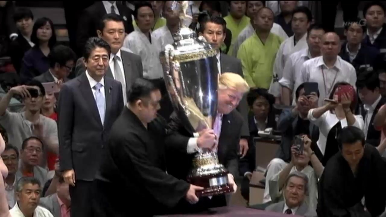 データ詳細 トランプ大統領が大相撲観戦:枡席に入場→表彰式→退場まで