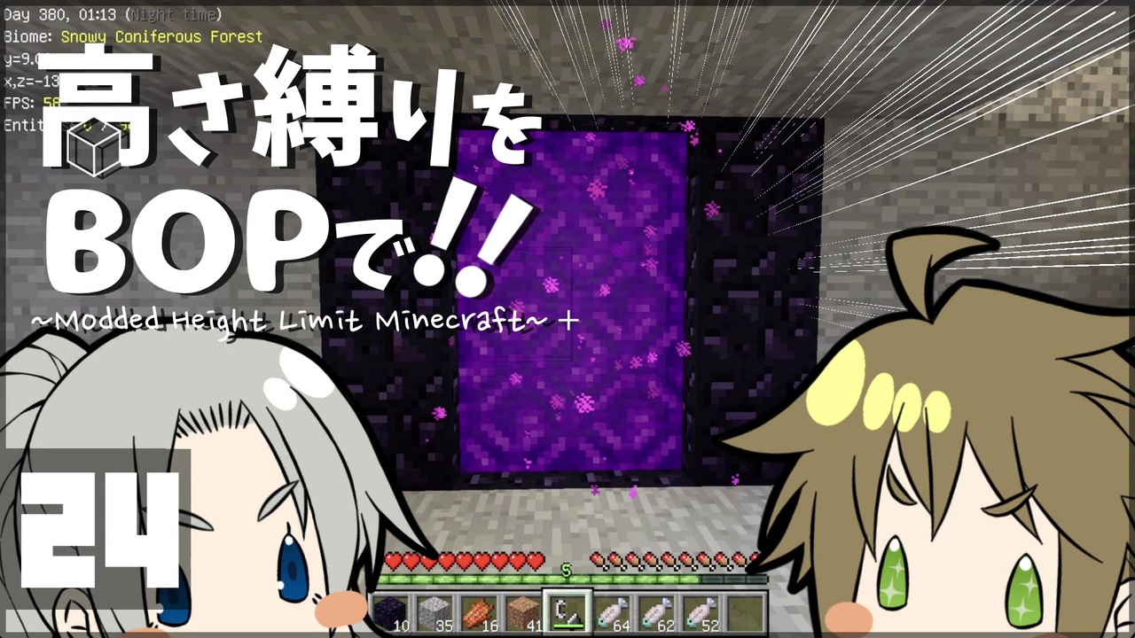 S「ズザーッ!!<strong>シゲるん、セーフ!!</strong>」<br>A「ほぼアウトだぞいい加減にしろ」<br>S「投稿しようと思ったらパソコンが固まった時はもうダメかと思いました」<br>A「頼むからもうちょっと余裕を持ってくれ…」<br>S「今回からネザー編です!」<br><br>てりぃさん考案の高さ縛り(<a href="https://www.nicovideo.jp/watch/sm25484843" class="watch">sm25484843</a>)に、Mod入り変則ルールで挑みます!<br>※動画内容に関係の無いコメントはご遠慮ください<br>※不快に感じたコメントはそっとNG登録でお願い致します<br><br>RodMond様からいただいた支援絵はこちら→<a href="https://seiga.nicovideo.jp/seiga/im9272669" target="_blank" rel="noopener">im9272669</a><br><br>動画作成タイミングの都合で紹介できなかった広告者様は次回動画でご紹介させていただきます!<br><br>目標①:岩盤上に1辺1mの固形立方体ブロックを全種類積んで塔を作る!<br>目標②:バニラ・BOPの全進捗クリア!<br><br>制限①:行動可能範囲は塔の高さまで!<br>制限②:塔の太さは2×2、詳細は#01(<a href="https://www.nicovideo.jp/watch/sm33085909" class="watch">sm33085909</a>)を参照! <br><br>Twitter作りました→<a href="https://twitter.com/corpo_EBIMAYO" target="_blank" rel="noopener nofollow">https://twitter.com/corpo_EBIMAYO</a><br><br>Minecraft ver1.12.2<br><br><a href="https://www.nicovideo.jp/watch/sm35045472" class="watch">sm35045472</a><<<前|一覧:<a href="https://www.nicovideo.jp/mylist/61794501" target="_blank" rel="noopener">mylist/61794501</a>|次>>><a href="https://www.nicovideo.jp/watch/sm35335902" class="watch">sm35335902</a>