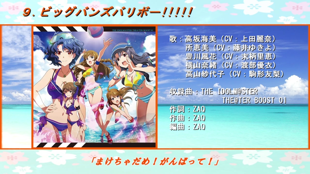 | 630 | 1280位 | 9,389 | 20位 | アイドルマスター | 1840位 | 4,723 | 1121位 | 216 | 490位 | 178 | - | - |