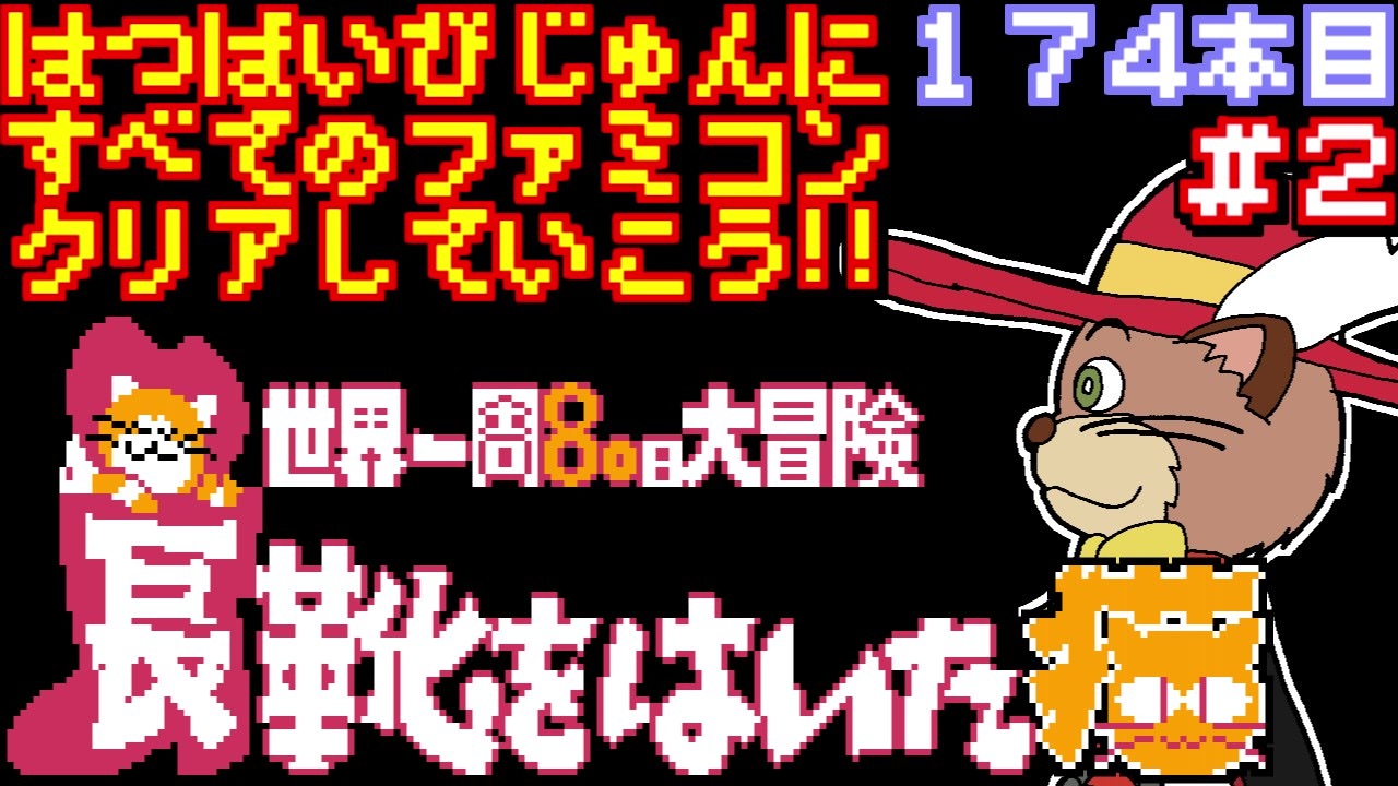 174本目 長靴をはいた猫 世界一周80日大冒険 クリア条件:80日の12時までにビッグ・ベンの鐘を鳴らす<br> <br><span style="color: #ff0000; font-size: medium;">発売日順に全てのファミコンソフトをクリアしていこう、という企画です。</span><br><br>1986年11月21日<br>東映動画<br>アクション<br>長靴をはいた猫 世界一周80日大冒険<br><span style="color: #ffffff;">検索用:ファミリーコンピュータ NES 実況プレイ動画 レトロゲーム アクション クソゲー ペロ</span><br>■前回→<a href="https://www.nicovideo.jp/watch/sm35204513" class="watch">sm35204513</a><br>■次回→<a href="https://www.nicovideo.jp/watch/sm35242544" class="watch">sm35242544</a><br><br>■サムネのイラストはひでごんすさん→<a href="https://www.nicovideo.jp/user/3237582" target="_blank" rel="noopener">user/3237582</a><br /><br>◇◆じゅんくりマイリスト関連◆◇<br>■全じゅんくりマイリスト1→<a href="https://www.nicovideo.jp/mylist/67057947" target="_blank" rel="noopener">mylist/67057947</a><br>■全じゅんくりマイリスト2→<a href="https://www.nicovideo.jp/mylist/67057957" target="_blank" rel="noopener">mylist/67057957</a><br>■全じゅんくりマイリスト3→<a href="https://www.nicovideo.jp/mylist/72945068" target="_blank" rel="noopener">mylist/72945068</a><br>■じゅんくりpart1集→<a href="https://www.nicovideo.jp/mylist/67169410" target="_blank" rel="noopener">mylist/67169410</a><br>■1983年→<a href="https://www.nicovideo.jp/mylist/50525072" target="_blank" rel="noopener">mylist/50525072</a><br>■1984年→<a href="https://www.nicovideo.jp/mylist/50525168" target="_blank" rel="noopener">mylist/50525168</a><br>■1985年→<a href="https://www.nicovideo.jp/mylist/50525247" target="_blank" rel="noopener">mylist/50525247</a><br>■1986年→<a href="https://www.nicovideo.jp/mylist/50525642" target="_blank" rel="noopener">mylist/50525642</a><br>■1987年→<a href="https://www.nicovideo.jp/mylist/72895831" target="_blank" rel="noopener">mylist/72895831</a><br>■ディスクシステム→<a href="https://www.nicovideo.jp/mylist/50525822" target="_blank" rel="noopener">mylist/50525822</a><br>■番外編マイリスト→<a href="https://www.nicovideo.jp/mylist/67689092" target="_blank" rel="noopener">mylist/67689092</a><br><br>◇その他にーや。関連◇<br>■にーや。が語るだけ→<a href="https://www.nicovideo.jp/mylist/67575298" target="_blank" rel="noopener">mylist/67575298</a><br>■ファミコンカタログ→<a href="https://www.nicovideo.jp/mylist/67359834" target="_blank" rel="noopener">mylist/67359834</a><br>■YouTubeチャンネル→<a href="https://www.youtube.com/user/218niya0707" target="_blank" rel="noopener nofollow">https://www.youtube.com/user/218niya0707</a><br>■Twitter→<a href="https://twitter.com/famicom_ni_ya" target="_blank" rel="noopener nofollow">https://twitter.com/famicom_ni_ya</a><br>■企画詳細→ <a href="http://niya28.web.fc2.com/fc/gamelist.html" target="_blank" rel="noopener nofollow">http://niya28.web.fc2.com/fc/gamelist.html</a>