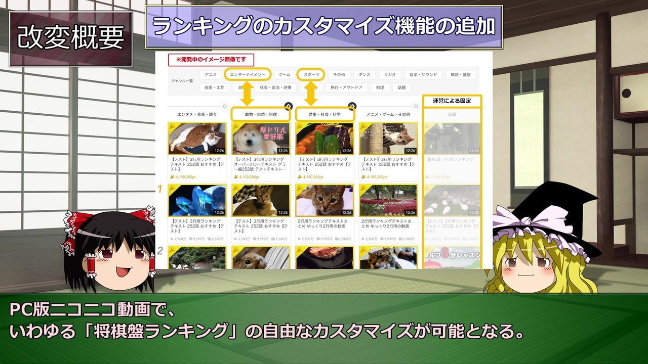 <span style="font-size: 24px;"><u>続報・コメ返し→<a href="https://www.nicovideo.jp/watch/sm35314987" class="watch">sm35314987</a></u></span><br>ゆっくり初投稿です。<br>2019年6月にカテゴリが廃止される事があまりにも知られていないので周知・解説のため投稿しました。<br><br>3/11運営公式生放送:<a href="https://live.nicovideo.jp/watch/lv318482725" target="_blank" rel="noopener">lv318482725</a><br>3/13窓口担当生放送公式アーカイブ:<a href="https://www.nicovideo.jp/mylist/65698783" target="_blank" rel="noopener">mylist/65698783</a><br><br>公式インフォ:<a href="https://blog.nicovideo.jp/niconews/103407.html" target="_blank" rel="noopener nofollow">https://blog.nicovideo.jp/niconews/103407.html</a><br>窓口担当Q&A:<a href="https://ch.nicovideo.jp/article/ar1740969" target="_blank" rel="noopener">ar1740969</a><br><br>窓口担当Twitter:<a href="https://twitter.com/nico_nico_talk" target="_blank" rel="noopener nofollow">https://twitter.com/nico_nico_talk</a><br>窓口担当チャンネル:<a href="https://ch.nicovideo.jp/nicotalk" target="_blank" rel="noopener nofollow">https://ch.nicovideo.jp/nicotalk</a><br>お問い合わせフォーム(下部「サポートに問い合わせる」から):<a href="https://qa.nicovideo.jp/faq/show/6163" target="_blank" rel="noopener nofollow">https://qa.nicovideo.jp/faq/show/6163</a><br><br>「ニコ動ランキング改変2019意見リンク」でブロマガ検索:<a href="https://ch.nicovideo.jp/search/%E3%83%8B%E3%82%B3%E5%8B%95%E3%83%A9%E3%83%B3%E3%82%AD%E3%83%B3%E3%82%B0%E6%94%B9%E5%A4%892019%E6%84%8F%E8%A6%8B%E3%83%AA%E3%83%B3%E3%82%AF?type=article" target="_blank" rel="noopener nofollow">https://ch.nicovideo.jp/search/%E3%83%8B%E3%82%B3%E5%8B%95%E3%83%A9%E3%83%B3%E3%82%AD%E3%83%B3%E3%82%B0%E6%94%B9%E5%A4%892019%E6%84%8F%E8%A6%8B%E3%83%AA%E3%83%B3%E3%82%AF?type=article</a><br><br>次回→<a href="https://www.nicovideo.jp/watch/sm35314987" class="watch">sm35314987</a><br>マイリス:<a href="https://www.nicovideo.jp/mylist/65176370" target="_blank" rel="noopener">mylist/65176370</a><br><br>【6/6追記】公式のインフォやQ&Aへのリンクを貼り忘れていたので追加しました。<br>【6/27追記】新しい動画へのリンクを追加しました。