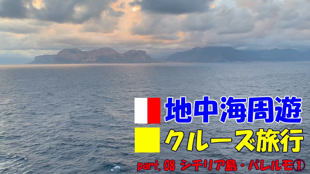 旅行5日目(クルーズ4日目)①<br>内容<br>・パレルモ入港 13万トンの巨体がバックで港に入っていきます。<br>・パレルモ観光 世界遺産・モンレアーレ大聖堂<br> <br>これまで頂戴したご質問については、新作動画の中でご紹介する予定ですが、<br>一応ご質問コメントに返答する形でコメントを入れさせてもらいました。<br>気になる方は過去動画コメントもご参照頂ければ幸いです。2019.06.08<br> <br><a href="https://www.nicovideo.jp/watch/sm35209301" class="watch">sm35209301</a> ← part.07 / part.09 → <a href="https://www.nicovideo.jp/watch/sm35265501" class="watch">sm35265501</a><br>地中海クルーズ→ <a href="https://www.nicovideo.jp/mylist/65465682" target="_blank" rel="noopener">mylist/65465682</a><br>これまで投稿した動画一覧→<a href="https://www.nicovideo.jp/mylist/56589571" target="_blank" rel="noopener">mylist/56589571</a><br> <br>前作にコメント、マイリス、フォロー、広告くださいました皆様、<br>誠にありがとうございました!<br>