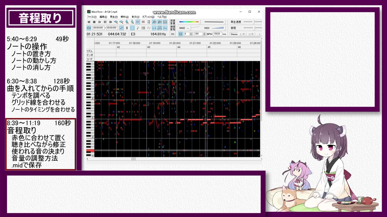 初心者なりに出来る限り分かりやすく「歌うボイスロイドを作る方法」を解説した動画です。<br>何分浅知恵での解説となりますので、もし間違いがあればコメント等で訂正して頂けると有り難いです。<br>本当はまとめて投稿する予定だったのですが、思っていたより時間がかかりそうなので出来た分から上げていくことにしました。<br>製作速度が遅くて申し訳ありません。<br><br><br>・このPartでは動画のダウンロードとwavetoneの導入、操作説明をします。<br>動画時間が長くなってしまいました、これでも半分程削ったので説明不足でしたらすみません。<br>今更ですが、基本は台詞とメイン画面を見て、引っかかった部分があれば備考やつぶやきに目を向けてもらえればと思います。<br><br>02:57のコメントより<br><a href="https://twitter.com/phunitea/status/1153445093866536960" target="_blank" rel="noopener nofollow">https://twitter.com/phunitea/status/1153445093866536960</a><br><br><br><br>◆スズモフ様のkotonosync : <a href="https://www.nicovideo.jp/watch/sm29541659" class="watch">sm29541659</a><br>◆ika様の【初音ミク】みんなみくみくにしてあげる♪【してやんよ】:<a href="https://www.nicovideo.jp/watch/sm19069321" class="watch">sm19069321</a><br><br>◇外部サイト<br>・JASRACの音楽利用のページ<br><a href="https://www.jasrac.or.jp/info/network/pickup/movie.html" target="_blank" rel="noopener nofollow">https://www.jasrac.or.jp/info/network/pickup/movie.html</a><br>・Ackie Sound様(wavetoneダウンロードのサイト)<br><a href="http://ackiesound.ifdef.jp/" target="_blank" rel="noopener nofollow">http://ackiesound.ifdef.jp/</a><br>・米津玄師様のMV「Lemon」<br><a href="https://www.youtube.com/watch?v=SX_ViT4Ra7k" target="_blank" rel="noopener nofollow">https://www.youtube.com/watch?v=SX_ViT4Ra7k</a><br><br><br>Part.Z(前語り) → <a href="https://www.nicovideo.jp/watch/sm35178318" class="watch">sm35178318</a><br>Part.A(UTAUの導入と配布確認) → <a href="https://www.nicovideo.jp/watch/sm35178359" class="watch">sm35178359</a><br>Part.B前(UTAUの操作説明) → <a href="https://www.nicovideo.jp/watch/sm35210688" class="watch">sm35210688</a><br>Part.B後(wavetoneの導入と説明他) → ここ<br>Part.C(convmakiの導入と変換色々) → <a href="https://www.nicovideo.jp/watch/sm35303058" class="watch">sm35303058</a><br>Part.D(kotonosyncの導入と歌ボ出力) → <a href="https://www.nicovideo.jp/watch/sm35341232" class="watch">sm35341232</a><br>Part.E(<span style="color: #000000; font-size: 13px;">新Ver.kotonosyncによる音程自動調整</span>) → <a href="https://www.nicovideo.jp/watch/sm35399917" class="watch">sm35399917</a><br><span style="font-size: 14px;">Part.F(歌ボ製作の一連の流れ) → </span><a href="https://www.nicovideo.jp/watch/sm35432351" class="watch">sm35432351</a><br>Part.EX群 → <a href="https://www.nicovideo.jp/watch/sm35747179" class="watch">sm35747179</a><br><br>この講座のマイリスト【<a href="https://www.nicovideo.jp/mylist/65660926" target="_blank" rel="noopener">mylist/65660926</a>】