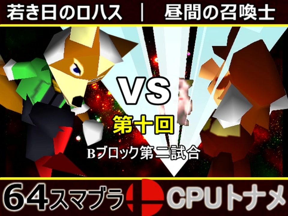 正統派対決?!<br>※どちらが勝つかアンケ結果(Twitter調べ) <br>若き日のロハス(FO) 45% VS 昼間の召喚士(MA) 55%<br><br><span style="color: #0000ff;"><u>※64スマブラCPUトナメ実況のwikiができた模様</u></span><span style="color: #0000ff;">→</span> <a href="https://wiki3.jp/cpu_64" target="_blank" rel="noopener nofollow">https://wiki3.jp/cpu_64</a><br><br><span style="color: #ff0000; font-size: 24px;"><strong>次→</strong></span>【<a href="https://www.nicovideo.jp/watch/sm35266314" class="watch">sm35266314</a>】※毎日投稿<br><br>前【<a href="https://www.nicovideo.jp/watch/sm35266243" class="watch">sm35266243</a>】 Aブロック第一試合【<a href="https://www.nicovideo.jp/watch/sm35254266" class="watch">sm35254266</a>】 <br><span style="color: #000000; font-size: 14px;">第十回選手紹介動画【</span><span style="color: #006699; font-size: 14px;"><a href="https://www.nicovideo.jp/watch/sm35240933" class="watch">sm35240933</a></span><span style="color: #000000; font-size: 14px;">】</span><br>第十回マイリスト【<a href="https://www.nicovideo.jp/mylist/65788927" target="_blank" rel="noopener">mylist/65788927</a>】<br>64スマブラCPUトナメ実況part1まとめ【<a href="https://www.nicovideo.jp/mylist/60846861" target="_blank" rel="noopener">mylist/60846861</a>】<br>その他シリーズ【<a href="https://www.nicovideo.jp/mylist/12965027" target="_blank" rel="noopener">mylist/12965027</a>】<br><br><span style="color: #00bfff;"><strong>Twitter</strong></span>【<a href="https://twitter.com/niconicopppppp" target="_blank" rel="noopener nofollow">https://twitter.com/niconicopppppp</a> 】<br><span style="color: #ff4500;"><strong>チャンネル</strong></span>【<a href="https://ch.nicovideo.jp/p-desu" target="_blank" rel="noopener">ch.nicovideo.jp/p-desu</a>】
