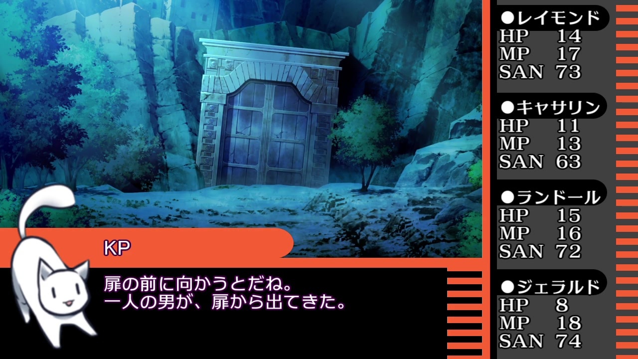 本作は、「 株式会社アークライト 」及び「株式会社KADOKAWA」が権利を有する『クトゥルフ神話TRPG』の二次創作物です。<br><br>Call of Cthulhu is copyright ©1981, 2015, 2019 by Chaosium Inc. ;all rights reserved. Arranged by Arclight Inc.<br>Call of Cthulhu is a registered trademark of Chaosium Inc.<br>PUBLISHED BY KADOKAWA CORPORATION 「クトゥルフ神話TRPG」<br><br>※当シナリオはシナリオ集「霧に煙る街並」に収録されています。<br><a href="https://colorcat.booth.pm/items/1656973" target="_blank" rel="noopener nofollow">https://colorcat.booth.pm/items/1656973</a><br><br>ぱんだ=ひろさんが応援団を描いてくださいました!→<a href="https://seiga.nicovideo.jp/seiga/im9356376" target="_blank" rel="noopener">im9356376</a><br>わーい、かわいい。<br>第二章の神話生物絵等でもお世話になっております。(深々)<br><br>ヴィクトリア朝セッションです。<br>時代考証他間違っているところもあるかもしれませんが、大目に見ていただければ幸いです。<br>此方はキャンペーンの第三章ですので、先に第一章(<a href="https://www.nicovideo.jp/watch/sm35138839" class="watch">sm35138839</a>)第二章(<a href="https://www.nicovideo.jp/watch/sm35186065" class="watch">sm35186065</a>)をご試聴ください。<br><br>身内卓を動画化しています。<br>ハウスルールましましで色々緩いですが、ご容赦ください。<br><br>広告して下さる皆さん、いつもありがとうございます。<br>まとめてのお礼となりまして恐縮ですが、今後とも頑張ります。<br><br>[クトゥルフ動画一覧]<a href="https://www.nicovideo.jp/mylist/60110794" target="_blank" rel="noopener">mylist/60110794</a><br>[part1動画一覧]<a href="https://www.nicovideo.jp/mylist/60289921" target="_blank" rel="noopener">mylist/60289921</a><br>[ガスライトセッションマイリスト]<a href="https://www.nicovideo.jp/mylist/65566982" target="_blank" rel="noopener">mylist/65566982</a><br><br>[前]<a href="https://www.nicovideo.jp/watch/sm35264262" class="watch">sm35264262</a><br><span style="font-size: 13px;">[次]</span><a href="https://www.nicovideo.jp/watch/sm35274353" class="watch">sm35274353</a><br /><br>色猫卓ポータルサイト<br>→<a href="https://marchocias.xsrv.jp/colorcat/index.html" target="_blank" rel="noopener nofollow">https://marchocias.xsrv.jp/colorcat/index.html</a><br>動画で紹介しても良い支援絵は #いろねこあーと で!<br><br>ピッコマで小説連載開始しました!<br>魔族生まれの聖女様!? 著:黒猫ている<br><a href="https://piccoma.com/web/product/156938" target="_blank" rel="noopener nofollow">https://piccoma.com/web/product/156938</a>