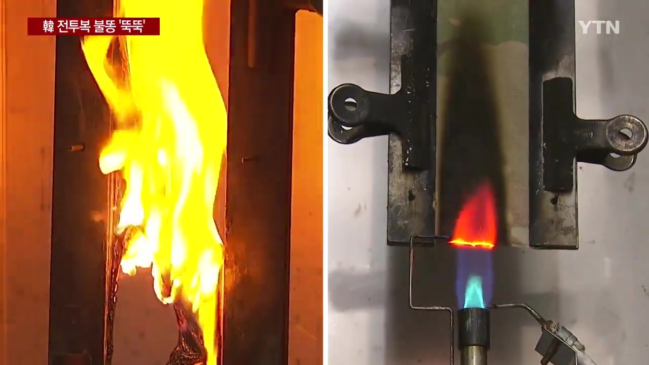 これは酷い・・・幾ら何でも韓国軍の兵士が可哀想ですよね。K-9の爆発事故後に更に燃えやすい繊維の軍服にしたという話は...ちょっと笑えるけどw<br><br>YTNの報道のGoogle翻訳です。<br>[アンカー]<br>しばらく前に、<span style="color: #000000;">陸軍兵士が戦闘服のズボンのポケットに入れていた電子たばこが爆発する事故が発生し、戦闘服にも火が点き兵士が重度の火傷を負うという報道をしました。</span><br>YTNは、後続の取材を通じて、私たち韓国軍の戦闘服が実際の火にどのよう脆弱かを確認する連続企画を用意しました。<br>その最初の企画で韓国軍戦闘服と米軍戦闘服の耐燃性を比較する実験を行いました。<br>ガンジョンギュ記者です。<br><br>[記者]<br>現在、私たちの将兵たちが着るデジタル柄軍服です。<br>火にどのように耐えることができるか、直接実験してみました。<br>試験装置の炎をはじくとすぐ、戦闘服に火が移ります。<br>真っ黒な煤を出して燃えるところで、なえた合成繊維が火の粉に変わってしまいます。<br><br>米軍のスーツで比較実験してみました。<br>燃える速度が確実に違います。<br>試験装置の炎を切ったらすぐに戦闘服についた火は消えてしまいます。<br><br>私たち戦闘服が40〜50秒の間、燃え上がって溶け出したことと対比される様子です。<br><br>理由は何か?<br>米軍戦闘服は、合成繊維であるナイロンと天然繊維である綿を等分に混ぜて作成します。<br>特殊作戦用難戦闘服が別にありますが、一般的な軍服も火によく耐え、少なくとも溶け出した繊維が肌に焦げ付いて2次被害を与えないように設計しているものです。<br>いわゆる「ノーメルト・ノードリップ(No melt、No drip)」です。<br><br>【シンジョンオ/韓国国防安保フォーラム事務局長:火薬爆弾危険な物質を最も多く扱うところが軍隊であるでしょう。戦闘服が火に乗って肉に吸い付くような場合の兵士たちは、2次被害を被るしかないだろう... ]<br><br>一方、韓国軍の最新戦闘服は、化学繊維100%、ポリエステルとレーヨンを最大8:2の割合で混ぜて作成します。<br>2017年K-9の爆発事故の後、火がよく移る素材の割合をむしろ高めたのです。<br><br>[軍関係者:私たちもすべての条件を満たしていることを普及必要があり、難燃機能が追加され、強度も落ち通気性も落ち偽装もも低くなると、より問題になるんじゃない?]<br><br>軍当局は、難燃戦闘服を別に作って、K-9自走砲をはじめとする電車運用部隊に普及していると説明しました。<br>しかし、絶対多数の一般的な将兵は今日も火に弱い戦闘服を着て訓練と作戦に入っています。