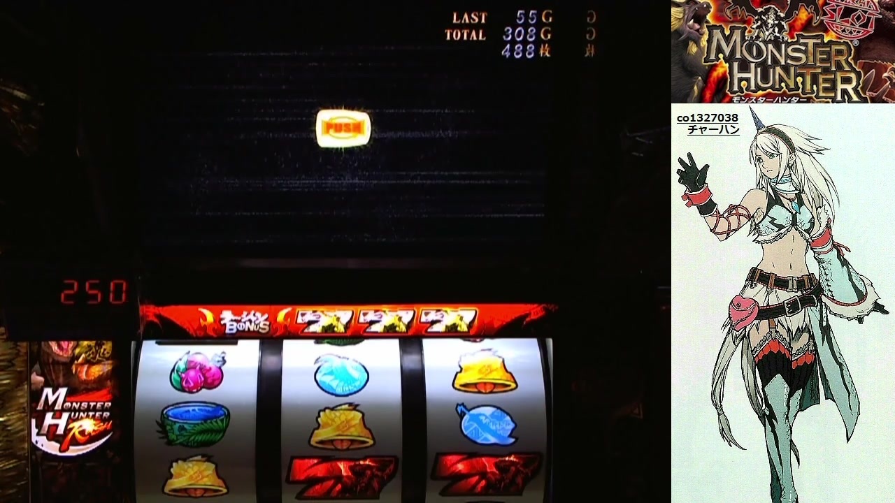 ひっさびさにモンハンです。<br>液晶の調子が悪くなる事がありますが、頻度が低く遊技に支障はないので我慢してます(´・ω・`)<br><br>ルール:8000G回す・確定画面まで揃えない様努める<br><br>第二期設定6編(<a href="https://www.nicovideo.jp/watch/sm28604348" class="watch">sm28604348</a>) < 前 次 > <a href="https://www.nicovideo.jp/watch/sm35309555" class="watch">sm35309555</a><br><br>モンハン <a href="https://www.nicovideo.jp/mylist/39306390" target="_blank" rel="noopener">mylist/39306390</a><br><br>生放送コミュ co1327038<br><br><br>Twitter:@charhannicoslot<br><br>機種毎のマイリスが限界の為、随時サブ垢へ引越し中。新マイリスは↓のパート1に記載してあります<br><br>スロ過去作 <a href="https://www.nicovideo.jp/mylist/43874385" target="_blank" rel="noopener">mylist/43874385</a><br><br>パチ過去作 <a href="https://www.nicovideo.jp/mylist/42815828" target="_blank" rel="noopener">mylist/42815828</a>