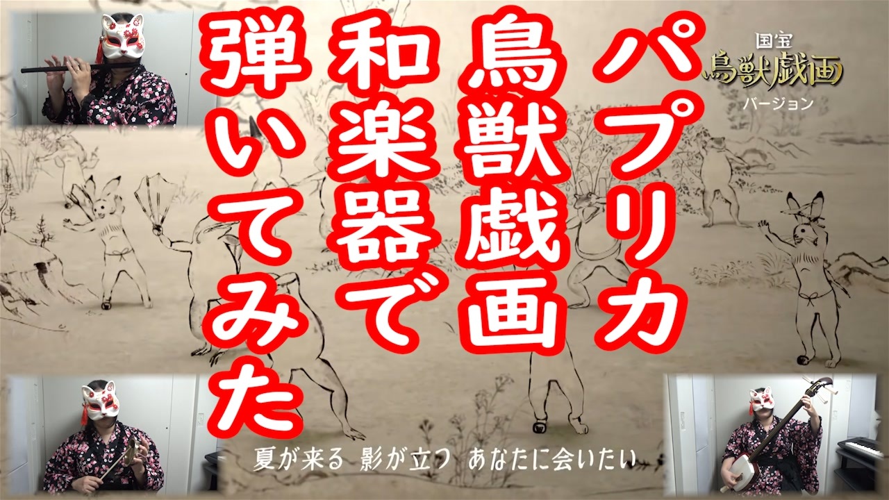 NHKさんの2020応援ソング「パプリカ」 国宝『鳥獣戯画』バージョンを和楽器で演奏してみました!<br><br>演奏: 早紅夜 <span style="color: #006699; font-size: 14px;"><a href="https://www.nicovideo.jp/mylist/27944081" target="_blank" rel="noopener">mylist/27944081</a></span><br>使用楽器: 箏、津軽三味線、横笛2本、すりがね<br>MIX: 大賀智章(団長) <span style="color: #006699; font-size: 14px;"><a href="https://twitter.com/TomoakiOga" target="_blank" rel="noopener nofollow">https://twitter.com/TomoakiOga</a></span><br><br><br><br><span style="color: #000000; font-size: 14px;">●youtube版→ </span><span style="color: #006699; font-size: 14px;"><a href="https://www.youtube.com/watch?v=DJnwB3xXbVg" target="_blank" rel="noopener nofollow">https://www.youtube.com/watch?v=DJnwB3xXbVg</a></span><br><br><br><br><br>♪<NHK>2020応援ソング「パプリカ」 国宝『鳥獣戯画』バージョン<br>◆<a href="https://www.youtube.com/watch?v=_qmUh9xnI10" target="_blank" rel="noopener nofollow">https://www.youtube.com/watch?v=_qmUh9xnI10</a><br><br>♪早紅夜(さくや)のツイッター<br>◆<span style="color: #006699; font-size: 14px;"><a href="https://twitter.com/sakuya_shami" target="_blank" rel="noopener nofollow">https://twitter.com/sakuya_shami</a></span>
