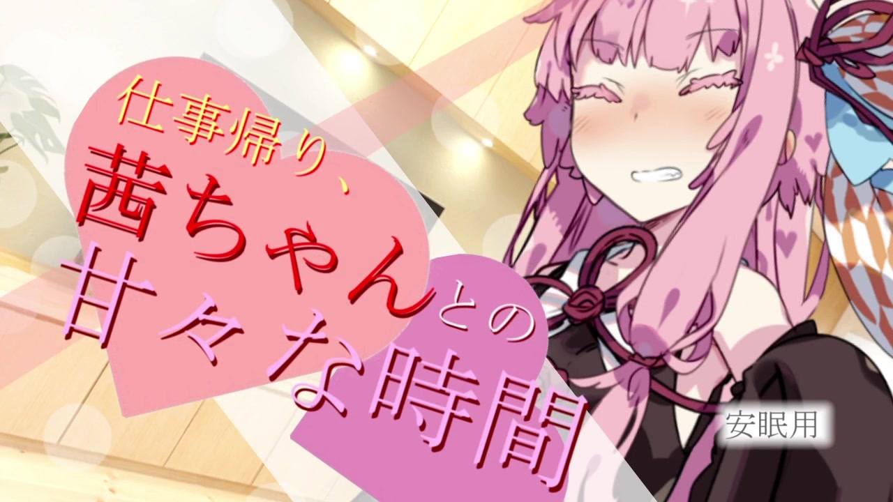 ダークは控えめ、ピンクは抜き、甘々に仕立てました。<br>安眠用です。ゆっくりお楽しみください。<br><br>とにかく茜ちゃんはあまあま動画に適してると思うんですよ。<br>いいですよねおっとりガール。<br><br>次→<a href="https://www.nicovideo.jp/watch/sm35552382" class="watch">sm35552382</a><br><br>______________________________<br><a href="https://www.nicovideo.jp/watch/sm35256966" class="watch">sm35256966</a> <span style="color: #e69138;"><strong>きりたんは、今日も彼をゲームに誘う</strong></span><br>こちらは当作品よりダーク寄りの仕上がりとなっています。<br><a href="https://www.nicovideo.jp/watch/sm34784368" class="watch">sm34784368</a> <span style="color: #6aa84f;"><strong>世界最後の日に、きりたんと挑む</strong></span><br>ずんだサイド。編集に結構時間を割いた力作です。…続きまだ?