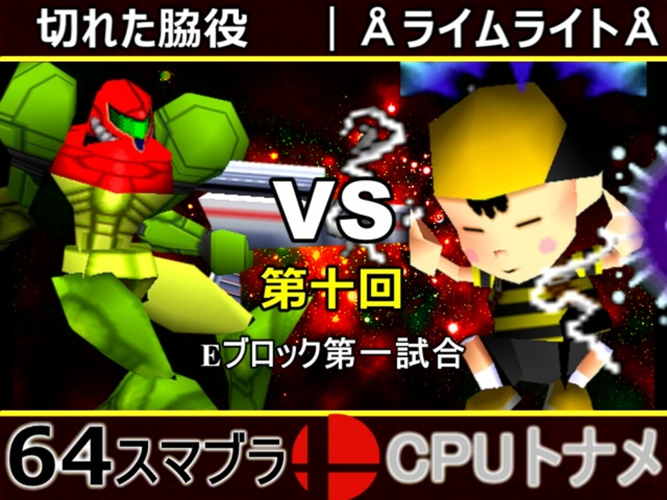 古参 vs 新参!!<br>※どちらが勝つかアンケ結果(Twitter調べ) <br>切れた脇役(SA) 50% VS ÅライムライトÅ(NE) 50%<br><br><span style="color: #0000ff;"><u>※64スマブラCPUトナメ実況のwikiができた模様</u></span><span style="color: #0000ff;">→</span> <a href="https://wiki3.jp/cpu_64" target="_blank" rel="noopener nofollow">https://wiki3.jp/cpu_64</a><br><br><span style="color: #ff0000; font-size: 24px;"><strong>次→</strong></span>【<a href="https://www.nicovideo.jp/watch/sm35312706" class="watch">sm35312706</a>】※毎日投稿<br><br>前【<a href="https://www.nicovideo.jp/watch/sm35297133" class="watch">sm35297133</a>】 Aブロック第一試合【<a href="https://www.nicovideo.jp/watch/sm35254266" class="watch">sm35254266</a>】 <br><span style="color: #000000; font-size: 14px;">第十回選手紹介動画【</span><span style="color: #006699; font-size: 14px;"><a href="https://www.nicovideo.jp/watch/sm35240933" class="watch">sm35240933</a></span><span style="color: #000000; font-size: 14px;">】</span><br>第十回マイリスト【<a href="https://www.nicovideo.jp/mylist/65788927" target="_blank" rel="noopener">mylist/65788927</a>】<br>64スマブラCPUトナメ実況part1まとめ【<a href="https://www.nicovideo.jp/mylist/60846861" target="_blank" rel="noopener">mylist/60846861</a>】<br>その他シリーズ【<a href="https://www.nicovideo.jp/mylist/12965027" target="_blank" rel="noopener">mylist/12965027</a>】<br><br><span style="color: #00bfff;"><strong>Twitter</strong></span>【<a href="https://twitter.com/niconicopppppp" target="_blank" rel="noopener nofollow">https://twitter.com/niconicopppppp</a> 】<br><span style="color: #ff4500;"><strong>チャンネル</strong></span>【<a href="https://ch.nicovideo.jp/p-desu" target="_blank" rel="noopener">ch.nicovideo.jp/p-desu</a>】