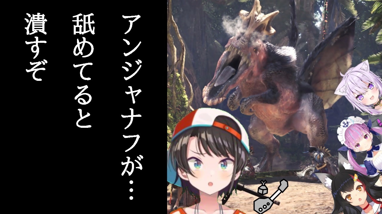 <span style="font-size: 16px;"><strong>綿棒を背負ってアンジャナフを狩るハンター 大空スバル</strong></span><br><br><br>元動画:<strong>【#ムーングラデーション】アンジャナフ討伐は俺たちにまかせろ!【MHW】</strong><br><a href="https://www.youtube.com/watch?v=Q_RZbZrYavE" target="_blank" rel="noopener nofollow">https://www.youtube.com/watch?v=Q_RZbZrYavE</a><br><br><strong>大空スバル(ホロライブ)<br>チャンネル</strong>:<a href="https://www.youtube.com/channel/UCvzGlP9oQwU--Y0r9id_jnA" target="_blank" rel="noopener nofollow">https://www.youtube.com/channel/UCvzGlP9oQwU--Y0r9id_jnA</a><br><strong>Twitter</strong>:<a href="https://twitter.com/oozorasubaru" target="_blank" rel="noopener nofollow">https://twitter.com/oozorasubaru</a><br><br><strong>湊あくあ(ホロライブ)<br>チャンネル</strong>:<a href="https://www.youtube.com/channel/UC1opHUrw8rvnsadT-iGp7Cg" target="_blank" rel="noopener nofollow">https://www.youtube.com/channel/UC1opHUrw8rvnsadT-iGp7Cg</a><br><strong>Twitter</strong>:<a href="https://twitter.com/minatoaqua" target="_blank" rel="noopener nofollow">https://twitter.com/minatoaqua</a><br><br><strong>大神ミオ(ホロライブゲーマーズ)<br>チャンネル</strong>:<a href="https://www.youtube.com/channel/UCp-5t9SrOQwXMU7iIjQfARg" target="_blank" rel="noopener nofollow">https://www.youtube.com/channel/UCp-5t9SrOQwXMU7iIjQfARg</a><br><strong>Twitter</strong>:<a href="https://twitter.com/ookamimio" target="_blank" rel="noopener nofollow">https://twitter.com/ookamimio</a><br><br><strong>猫又おかゆ(ホロライブゲーマーズ)<br>チャンネル</strong>:<a href="https://www.youtube.com/channel/UCvaTdHTWBGv3MKj3KVqJVCw" target="_blank" rel="noopener nofollow">https://www.youtube.com/channel/UCvaTdHTWBGv3MKj3KVqJVCw</a><br><strong>Twitter</strong>:<a href="https://twitter.com/nekomataokayu" target="_blank" rel="noopener nofollow">https://twitter.com/nekomataokayu</a>