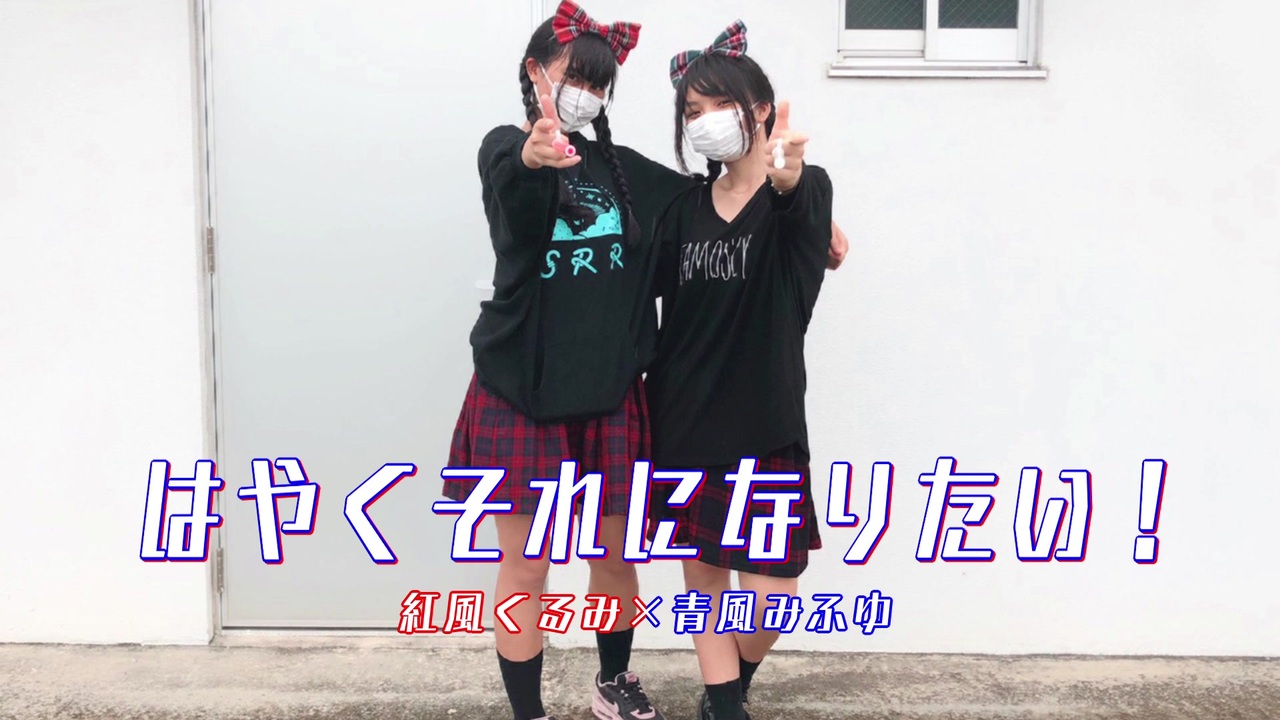 <span style="color: #0000ff;">「 あいわなびー!</span><span style="color: #ff0000;">叫ぼうよ! 」</span><br><br><br><br><br><br><br><br><br><br><br><br><br><br>完全にネタ!!!<br>リボン取れるし微妙に痛い大きさの石踏むしで散々でした。<br>でも楽しかったので見てください!<br>緑チェックリボン:青風みふゆ<br><br>めちゃくちゃはちゃけました~!楽しかった!<br>持ってるサイリウムの白いやつ絶対誰かが買わずに折って光らせたので青になりませんでした!!!!!!!!青です!!<br>赤チェックリボン:紅風くるみ<br><br><br><br>■楽曲本家様:<a href="https://www.nicovideo.jp/watch/sm31192903" class="watch">sm31192903</a><br>■振付本家様:<a href="https://www.nicovideo.jp/watch/sm32551893" class="watch">sm32551893</a><br><br>素敵な楽曲と振付ありがとうございました!<br><br><br><br>※無断転載禁止¦Reproduction is prohibited.¦禁止私自轉載<br>誹謗中傷コメントもお控え下さい<br><br><br><br><br>■Wind Class-風組-<br><br>5人グループで踊ってみたをしています!<br><br>【マイリスト】<a href="https://www.nicovideo.jp/mylist/63696798" target="_blank" rel="noopener">mylist/63696798</a><br><br>【Twitter公式垢】@_Wind_Class_<br><br>【名簿+Twitter】<br>1番¦青風 みふゆ @_No1_bluewind_<br>2番¦白風 アレン @Sirokaze_Allen<br>3番¦紅風 くるみ @windclass_963<br>4番¦緑風 紬 @mido_tumu326<br>5番¦桃風 ルナ @momo_kaze716