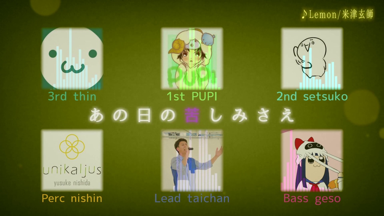 6人寄ればぼっちも群れ(至言)<br><br>ハモネプに出られないぼっち全部俺奏者6人が、<br>リアルで集まってせーので歌ってみました!<br><br>◆1st/Mix PUPI <span style="color: #0033cc; font-size: 13px;"><a href="https://www.nicovideo.jp/mylist/9364674" target="_blank" rel="noopener">mylist/9364674</a></span> @pupi_niconico<br><span style="color: #000000; font-size: 13px;">◆</span>2nd せつこ <span style="color: #0033cc; font-size: 13px;"><a href="https://www.nicovideo.jp/mylist/12919742" target="_blank" rel="noopener">mylist/12919742</a></span> @setsukou<br><span style="color: #000000; font-size: 13px;">◆</span>3rd しん <span style="color: #0033cc; font-size: 13px;"><a href="https://www.nicovideo.jp/mylist/18175938" target="_blank" rel="noopener">mylist/18175938</a></span> @thin_nico25<br><span style="color: #000000; font-size: 13px;">◆</span>Lead たいちゃん <span style="color: #0033cc; font-size: 13px;"><a href="https://www.nicovideo.jp/user/18271740" target="_blank" rel="noopener">user/18271740</a></span> @katotaichan<br><span style="color: #000000; font-size: 13px;">◆</span>Bass/Arr げそ <span style="color: #0033cc; font-size: 13px;"><a href="https://www.nicovideo.jp/mylist/28656213" target="_blank" rel="noopener">mylist/28656213</a> </span>@geso2geso<br><span style="color: #000000; font-size: 13px;">◆</span>Perc/Arr にしん <span style="color: #0033cc; font-size: 13px;"><a href="https://www.nicovideo.jp/mylist/33081650" target="_blank" rel="noopener">mylist/33081650</a></span> @unikaljus<br><br><span style="color: #262626; font-size: 13px;">◇Other</span><br><span style="color: #262626; font-size: 14px;">Pretender/ひげだん </span><a href="https://www.nicovideo.jp/watch/sm37063145" class="watch">sm37063145</a><br><span style="color: #262626;">O Come All Ye Faithful </span><span style="color: #262626; font-size: 13px;"><a href="https://www.nicovideo.jp/watch/sm36134624" class="watch">sm36134624</a></span>