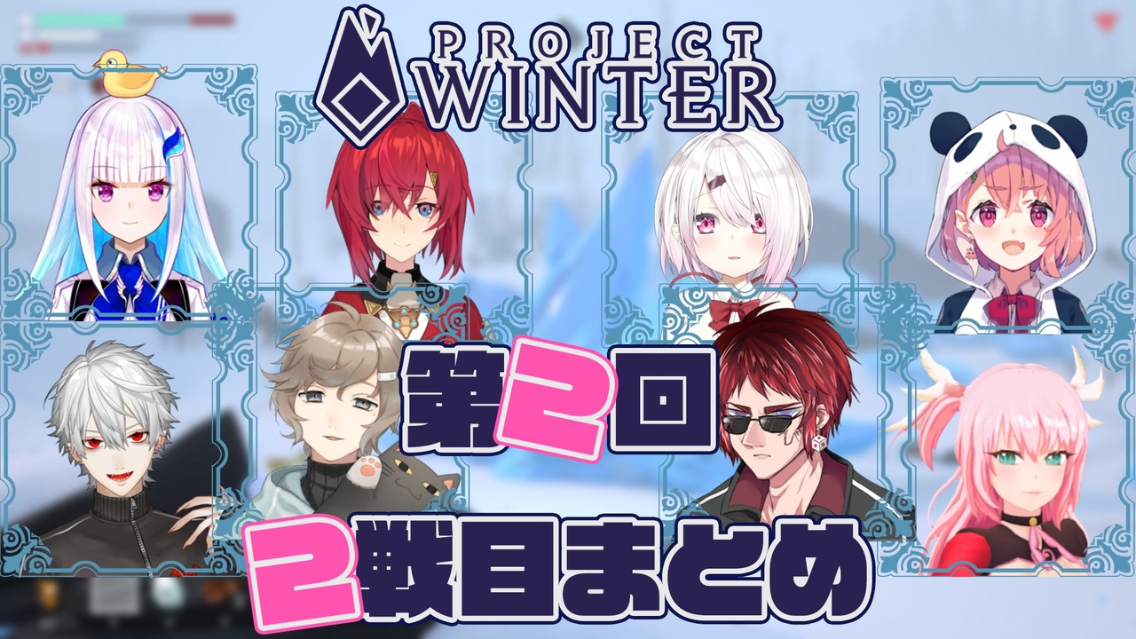はちゃめちゃな2戦目です。<br>※今回視点に偏りがあります。(だいたいトレイターのせい)<br><br><span style="font-size: 13px;">※YouTube⇒</span><a href="https://youtu.be/mTvhXqAl4BA" target="_blank" rel="noopener nofollow">https://youtu.be/mTvhXqAl4BA</a><br><br><a href="https://www.nicovideo.jp/watch/sm35343283" class="watch">sm35343283</a>←第2回1戦目 第2回3戦目→<a href="https://www.nicovideo.jp/watch/sm35364492" class="watch">sm35364492</a><br>※Project Winterまとめ⇒<a href="https://www.nicovideo.jp/mylist/65964009" target="_blank" rel="noopener">mylist/65964009</a><br><br><a href="#" class="seekTime" data-seekTime="00:57" onclick="seekNicoPlayer('#00:57'); return false;">#00:57</a>~ 泥棒椎名<br><a href="#" class="seekTime" data-seekTime="01:24" onclick="seekNicoPlayer('#01:24'); return false;">#01:24</a>~ 葛葉の独り言<br><a href="#" class="seekTime" data-seekTime="02:35" onclick="seekNicoPlayer('#02:35'); return false;">#02:35</a>~ トレイター判明?<br><a href="#" class="seekTime" data-seekTime="03:27" onclick="seekNicoPlayer('#03:27'); return false;">#03:27</a>~ アンジュの機転<br><a href="#" class="seekTime" data-seekTime="04:16" onclick="seekNicoPlayer('#04:16'); return false;">#04:16</a>~ ふぇありすの行く末<br><a href="#" class="seekTime" data-seekTime="06:12" onclick="seekNicoPlayer('#06:12'); return false;">#06:12</a>~ 叶くんの線引き<br><a href="#" class="seekTime" data-seekTime="08:08" onclick="seekNicoPlayer('#08:08'); return false;">#08:08</a>~ 花京院司<br><a href="#" class="seekTime" data-seekTime="10:47" onclick="seekNicoPlayer('#10:47'); return false;">#10:47</a>~ さくゆい<br><a href="#" class="seekTime" data-seekTime="11:30" onclick="seekNicoPlayer('#11:30'); return false;">#11:30</a>~ アンジュ・カトリーナ<br><a href="#" class="seekTime" data-seekTime="13:23" onclick="seekNicoPlayer('#13:23'); return false;">#13:23</a>~ 死別<br><a href="#" class="seekTime" data-seekTime="15:48" onclick="seekNicoPlayer('#15:48'); return false;">#15:48</a>~ 笹木咲の一人旅<br><a href="#" class="seekTime" data-seekTime="17:42" onclick="seekNicoPlayer('#17:42'); return false;">#17:42</a>~ 騒がしいトレイター<br><a href="#" class="seekTime" data-seekTime="20:06" onclick="seekNicoPlayer('#20:06'); return false;">#20:06</a>~ 天開司の二の舞<br><a href="#" class="seekTime" data-seekTime="23:29" onclick="seekNicoPlayer('#23:29'); return false;">#23:29</a>~ サイコパス<br><a href="#" class="seekTime" data-seekTime="27:19" onclick="seekNicoPlayer('#27:19'); return false;">#27:19</a>~ トレイター合流<br><br>【本編】約2時間24分【6/30配信】<br>【アンジュ・カトリーナ視点】<br><a href="https://youtu.be/nYPF39JdXjQ" target="_blank" rel="noopener nofollow">https://youtu.be/nYPF39JdXjQ</a><br><br>【YouTube】<br>【葛葉】<br><a href="https://www.youtube.com/channel/UCSFCh5NL4qXrAy9u-u2lX3g" target="_blank" rel="noopener nofollow">https://www.youtube.com/channel/UCSFCh5NL4qXrAy9u-u2lX3g</a><br>【叶】<br><a href="https://www.youtube.com/channel/UCspv01oxUFf_MTSipURRhkA" target="_blank" rel="noopener nofollow">https://www.youtube.com/channel/UCspv01oxUFf_MTSipURRhkA</a><br>【笹木咲】<br><a href="https://www.youtube.com/channel/UCoztvTULBYd3WmStqYeoHcA" target="_blank" rel="noopener nofollow">https://www.youtube.com/channel/UCoztvTULBYd3WmStqYeoHcA</a><br>【椎名唯華】<br><a href="https://www.youtube.com/channel/UC_4tXjqecqox5Uc05ncxpxg" target="_blank" rel="noopener nofollow">https://www.youtube.com/channel/UC_4tXjqecqox5Uc05ncxpxg</a><br>【リゼ・ヘルエスタ】<br><a href="https://www.youtube.com/channel/UCZ1xuCK1kNmn5RzPYIZop3w" target="_blank" rel="noopener nofollow">https://www.youtube.com/channel/UCZ1xuCK1kNmn5RzPYIZop3w</a><br>【アンジュ・カトリーナ】<br><a href="https://www.youtube.com/channel/UCHVXbQzkl3rDfsXWo8xi2qw" target="_blank" rel="noopener nofollow">https://www.youtube.com/channel/UCHVXbQzkl3rDfsXWo8xi2qw</a><br>【ふぇありす】<br><a href="https://www.youtube.com/channel/UC2Rr7mILebYLTjd38DNNUTw" target="_blank" rel="noopener nofollow">https://www.youtube.com/channel/UC2Rr7mILebYLTjd38DNNUTw</a><br>【天開司】<br><a href="https://www.youtube.com/channel/UCZYyhgoV314CM14zBD6vd4A" target="_blank" rel="noopener nofollow">https://www.youtube.com/channel/UCZYyhgoV314CM14zBD6vd4A</a><br><br>何かご意見あればこちらへ⇒<a href="https://twitter.com/aiaiaisssss" target="_blank" rel="noopener nofollow">https://twitter.com/aiaiaisssss</a>