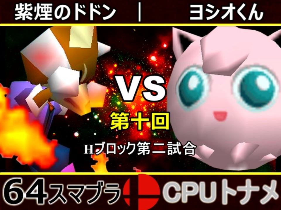 第一回勢全勝なるか?!<br>※どちらが勝つかアンケ結果(Twitter調べ) <br>紫煙のドドン(FO) 57% VS ヨシオくん(PU) 43%<br><br><span style="color: #0000ff;"><u>※64スマブラCPUトナメ実況のwikiができた模様</u></span><span style="color: #0000ff;">→</span> <a href="https://wiki3.jp/cpu_64" target="_blank" rel="noopener nofollow">https://wiki3.jp/cpu_64</a><br><br><span style="color: #ff0000; font-size: 24px;"><strong>次→</strong></span>【<span style="color: #32475e; font-size: 13px;"><a href="https://www.nicovideo.jp/watch/sm35356655" class="watch">sm35356655</a></span>】※毎日投稿<br><br>前【<a href="https://www.nicovideo.jp/watch/sm35347249" class="watch">sm35347249</a>】 Aブロック第一試合【<a href="https://www.nicovideo.jp/watch/sm35254266" class="watch">sm35254266</a>】 <br><span style="color: #000000; font-size: 14px;">第十回選手紹介動画【</span><span style="color: #006699; font-size: 14px;"><a href="https://www.nicovideo.jp/watch/sm35240933" class="watch">sm35240933</a></span><span style="color: #000000; font-size: 14px;">】</span><br>第十回マイリスト【<a href="https://www.nicovideo.jp/mylist/65788927" target="_blank" rel="noopener">mylist/65788927</a>】<br>64スマブラCPUトナメ実況part1まとめ【<a href="https://www.nicovideo.jp/mylist/60846861" target="_blank" rel="noopener">mylist/60846861</a>】<br>その他シリーズ【<a href="https://www.nicovideo.jp/mylist/12965027" target="_blank" rel="noopener">mylist/12965027</a>】<br><br><span style="color: #00bfff;"><strong>Twitter</strong></span>【<a href="https://twitter.com/niconicopppppp" target="_blank" rel="noopener nofollow">https://twitter.com/niconicopppppp</a> 】<br><span style="color: #ff4500;"><strong>チャンネル</strong></span>【<a href="https://ch.nicovideo.jp/p-desu" target="_blank" rel="noopener">ch.nicovideo.jp/p-desu</a>】