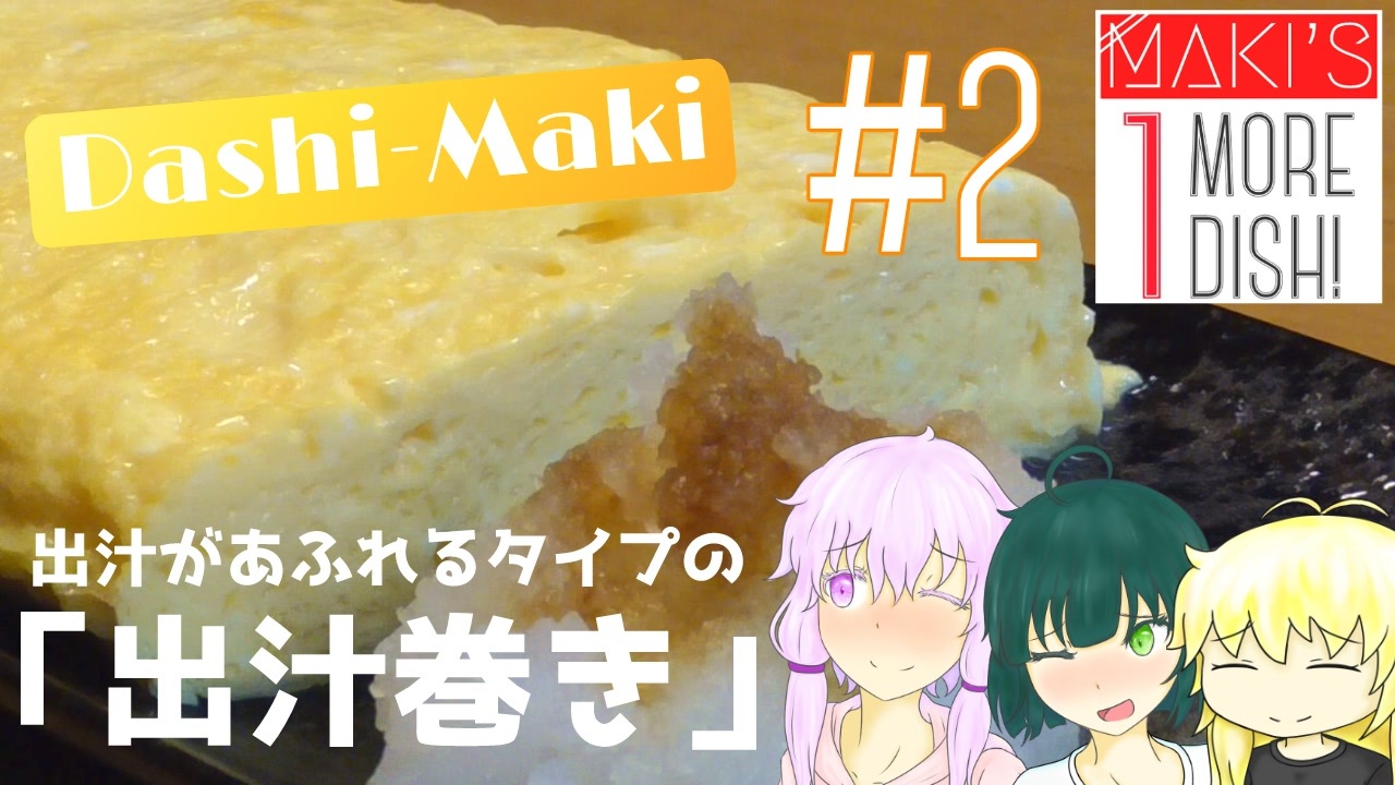 お久しぶりでございま…えっ…?<br>約2年…えっ?…えっ?<br> 大変申し訳ございませんでした(マントルめり込み土下座)<br> <br>出汁がじゅわじゅわ溢れるタイプの出汁巻き玉子です。<br>解説とかあんまりできてませんが、よろしくお願いいたします。<br><br>動画中では出汁をとってますが、お味噌汁の出汁をとるついでに<br>そこから拝借するとかすると効率的ですね。<br><br> あらすじ。<br>突然タピオカの禁止を弦巻マキから言い渡されるも、<br>別段好きなわけでもないので、特に動揺することもない結月ゆかり。<br>そんな中、週2でOMY事務所に入り浸るようになった京町セイカに対し、<br>弦巻マキ、結月ゆかりの二人はある計画を思いつく。<br>一方、南アフリカ共和国のヨハネスブルクには突如巨大な宇宙船が出現。<br>しかし宇宙船からの応答はなく、乗員が降りてくる様子もない。<br>人類はついに宇宙船に乗り込み調査を開始するが、<br>そこで発見されたのは、難民と化したエイリアン達で…!?<br> <br>がろろん様から支援絵を頂きました!ありがとうございます!:<a href="https://seiga.nicovideo.jp/seiga/im9544702" target="_blank" rel="noopener">im9544702</a><br><br>次:#3 まだだよ<br>前:#1 <a href="https://www.nicovideo.jp/watch/sm31774993" class="watch">sm31774993</a><br>マイリスト:<a href="https://www.nicovideo.jp/mylist/58424375" target="_blank" rel="noopener">mylist/58424375</a><br>