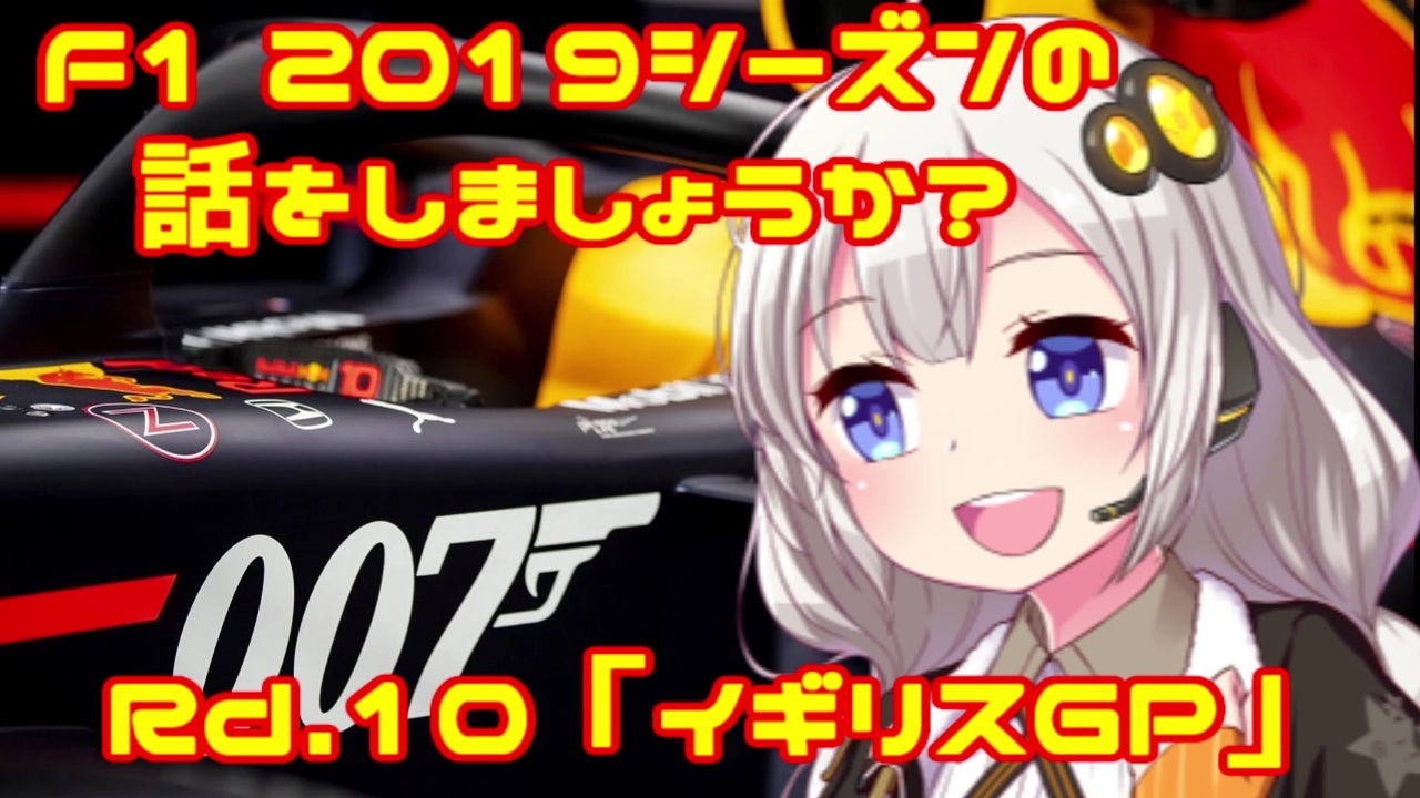 <br><br>「決勝のスタートボタンをチャーリーさんの息子さんにさせるという粋な計らい。」by 紲星あかり<br><br>おはこんばんちは、紲星あかりです。<br>この動画は、F1 2019シーズンをダイジェストでお送りしています。<br>第10回目は第10戦・イギリスGPです。<br>前回今季初優勝を獲得し、ホンダに13年ぶりの優勝をもたらしたフェルスタッペン。今回もマックス・パワーで勝利を掴めたのでしょうか?<br><br><br><span style="color: red;">(ご注意)この動画の情報は真実とは限りません。また、誤字・脱字が含まれる場合があります。ご了承ください。</span><br><br><br>前<span style="color: #000000; font-size: 13px;">→第9戦・オーストリアGP </span><a href="https://www.nicovideo.jp/watch/sm35346127" class="watch">sm35346127</a><br>次→第11戦・ドイツGP <a href="https://www.nicovideo.jp/watch/sm35471092" class="watch">sm35471092</a><br><br>F12019シーズンの話をしましょうか?マイリスト→<a href="https://www.nicovideo.jp/mylist/64678414" target="_blank" rel="noopener">mylist/64678414</a><br><br>うp主のF1動画シリーズ<br>F12018シーズンの話をしましょうか?マイリスト<span style="color: #000000; font-size: 13px;">→</span><a href="https://www.nicovideo.jp/mylist/61514606" target="_blank" rel="noopener">mylist/61514606</a><br>F1の話をしましょうか?マイリスト→<a href="https://www.nicovideo.jp/mylist/40499353" target="_blank" rel="noopener">mylist/40499353</a><br>F1の話をしましょうか?OPフルバージョン→<a href="https://www.nicovideo.jp/mylist/59030210" target="_blank" rel="noopener">mylist/59030210</a><br>F1 CM集→<a href="https://www.nicovideo.jp/mylist/57297507" target="_blank" rel="noopener">mylist/57297507</a><br><br>