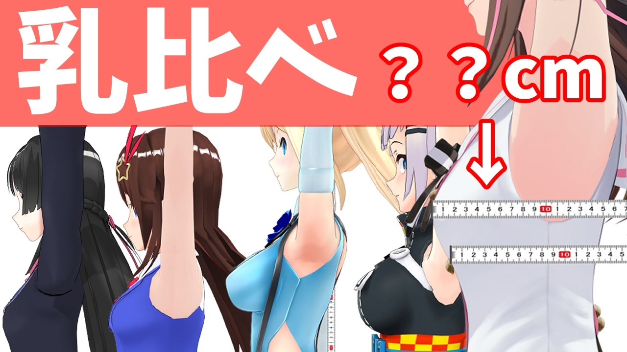 7/19更新 タイトル詐欺になっていたのでタイトル修正しました<br> Vtuberで一番の巨乳を調べてみました⇒Vtuber12人のお胸を比べてみた<br><br>他の動画:<a href="https://www.nicovideo.jp/mylist/66071028" target="_blank" rel="noopener">mylist/66071028</a><br>Twitter <a href="https://www.twitter.com/inujimania" target="_blank" rel="noopener nofollow">https://www.twitter.com/inujimania</a><br>Youtube版:<a href="https://youtu.be/ahMCxvRim50" target="_blank" rel="noopener nofollow">https://youtu.be/ahMCxvRim50</a><br> Youtubeのチャンネル:<a href="https://www.youtube.com/channel/UC3R9QBlaO_-Bs8dmjE4z18w" target="_blank" rel="noopener nofollow">https://www.youtube.com/channel/UC3R9QBlaO_-Bs8dmjE4z18w</a><br><br><span style="color: #0d0d0d; font-size: 14px;">バーチャルYoutuberのおっぱいの大きさを観測することで<br>普段応援している推しの健康状態を把握するという健全な企画です 。<br>僕は歌劇団なので富士葵ちゃんをそういう目で見れないので除外しました<br><br>協力してくれた方<br>MUKUMUKUDANCEさん</span><br><a href="https://www.youtube.com/channel/UC73H3ksc_JXhTb-HYE9mefg" target="_blank" rel="noopener nofollow">https://www.youtube.com/channel/UC73H3ksc_JXhTb-HYE9mefg</a><br><span style="color: #0d0d0d; font-size: 14px;">チャンミー天野さん</span><br><a href="https://www.youtube.com/channel/UC4ECb0YMRPjWiGKgdjnqLSw" target="_blank" rel="noopener nofollow">https://www.youtube.com/channel/UC4ECb0YMRPjWiGKgdjnqLSw</a><br><span style="color: #0d0d0d; font-size: 14px;">ズクレットミミュールさん</span><br><a href="https://www.youtube.com/channel/UCTCbTyk-CsLyaEdkaPcwkUA?view_as=subscriber" target="_blank" rel="noopener nofollow">https://www.youtube.com/channel/UCTCbTyk-CsLyaEdkaPcwkUA?view_as=subscriber</a><br><span style="color: #0d0d0d; font-size: 14px;">ご協力ありがとうございました!!</span>