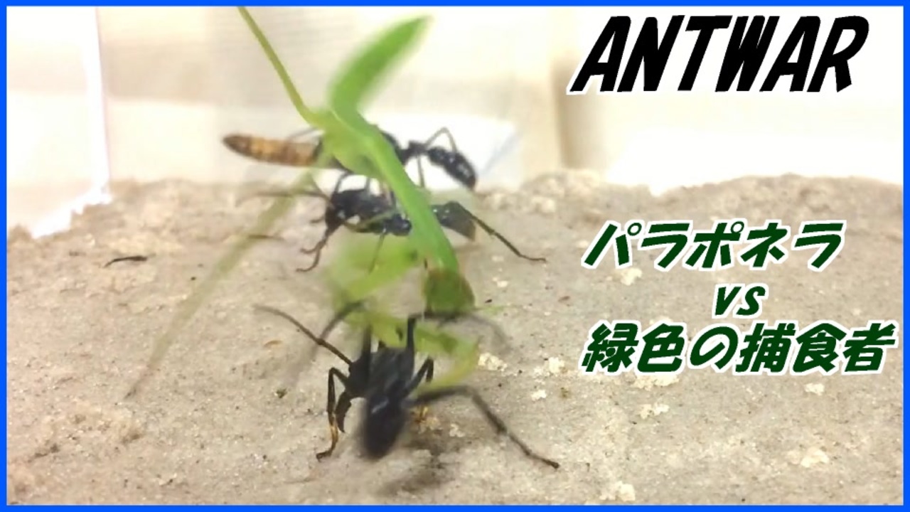<a href="https://www.nicovideo.jp/watch/sm35431809" class="watch">sm35431809</a>←もどる 次へ→<a href="https://www.nicovideo.jp/watch/sm35447889" class="watch">sm35447889</a><br>火曜・木曜・土曜・日曜の週4回更新。<br><br>蟻戦争マイリスト→<u><a href="https://www.nicovideo.jp/mylist/56298874" target="_blank" rel="noopener">mylist/56298874</a></u><br><br>∧__∧<br>(・ω・)<みんなが夏休みになると、休みがなくなるありじゃむ。<br><br>蟻は高度な社会性を持つ昆虫である。<br>~The ANT is advanced social insect.~<br><br>卵を産む役、飼育する役、兵隊役などに分かれ、1つのコミュニティを形成する。<br>~ANTs constitute one comunity.ANTs have the part(childbirth,bring<br>up,military service) in the community.~<br><br>本来出会わないはずの2つの種族が遭遇した時、我々は彼らの未知なる知性を発見するかもしれない。~ We may discover their intelligences when two species encounter.~