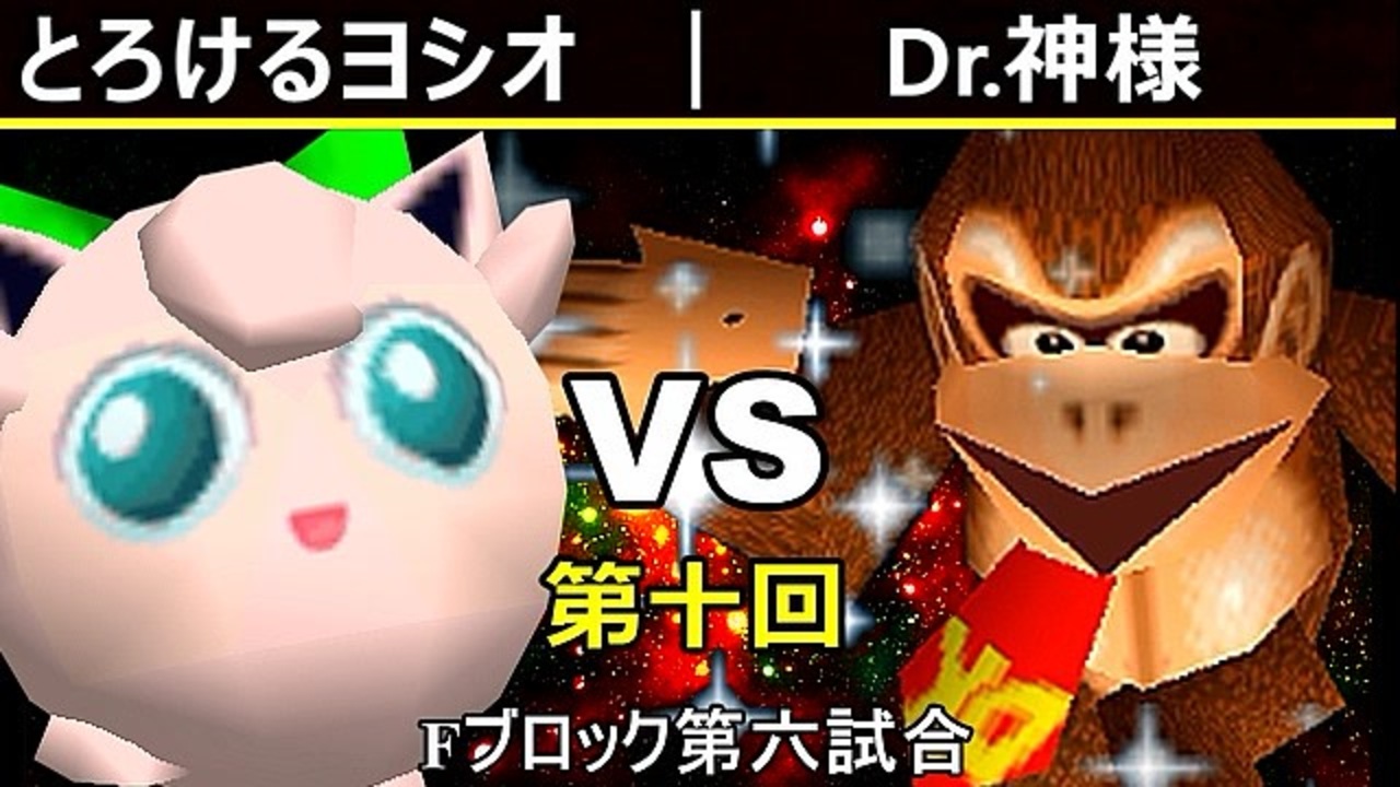 ポーズ似てない?<br>※どちらが勝つかアンケ結果(Twitter調べ) <br>とろけるヨシオ(PU) 61% VS Dr.神様(DK) 39%<br><br><span style="color: #ff0000; font-size: 13px;"><u>※プロスマブラーになりました→</u></span><span style="color: #000000; font-size: 13px;"> <a href="https://twitter.com/niconicopppppp/status/1152345555982360577" target="_blank" rel="noopener nofollow">https://twitter.com/niconicopppppp/status/1152345555982360577</a></span><br><span style="color: #0000ff;"><u>※64スマブラCPUトナメ実況のwikiができた模様</u></span><span style="color: #0000ff;">→</span> <a href="https://wiki3.jp/cpu_64" target="_blank" rel="noopener nofollow">https://wiki3.jp/cpu_64</a><br><br><span style="color: #ff0000; font-size: 24px;"><strong>次→</strong></span>【<a href="https://www.nicovideo.jp/watch/sm35446593" class="watch">sm35446593</a>】※毎日投稿<br><br>前【<a href="https://www.nicovideo.jp/watch/sm35438877" class="watch">sm35438877</a>】 <span style="color: #000000; font-size: 13px;">Gブロック第一試合【</span><a href="https://www.nicovideo.jp/watch/sm35330232" class="watch">sm35330232</a><span style="color: #000000; font-size: 13px;">】</span> Aブロック第一試合【<a href="https://www.nicovideo.jp/watch/sm35254266" class="watch">sm35254266</a>】 <br><span style="color: #000000; font-size: 14px;">第十回選手紹介動画【</span><span style="color: #006699; font-size: 14px;"><a href="https://www.nicovideo.jp/watch/sm35240933" class="watch">sm35240933</a></span><span style="color: #000000; font-size: 14px;">】</span><br>第十回マイリスト【<a href="https://www.nicovideo.jp/mylist/65788927" target="_blank" rel="noopener">mylist/65788927</a>】<br>64スマブラCPUトナメ実況part1まとめ【<a href="https://www.nicovideo.jp/mylist/60846861" target="_blank" rel="noopener">mylist/60846861</a>】<br>その他シリーズ【<a href="https://www.nicovideo.jp/mylist/12965027" target="_blank" rel="noopener">mylist/12965027</a>】<br><br><span style="color: #00bfff;"><strong>Twitter</strong></span>【<a href="https://twitter.com/niconicopppppp" target="_blank" rel="noopener nofollow">https://twitter.com/niconicopppppp</a> 】<br><span style="color: #ff4500;"><strong>チャンネル</strong></span>【<a href="https://ch.nicovideo.jp/p-desu" target="_blank" rel="noopener">ch.nicovideo.jp/p-desu</a>】