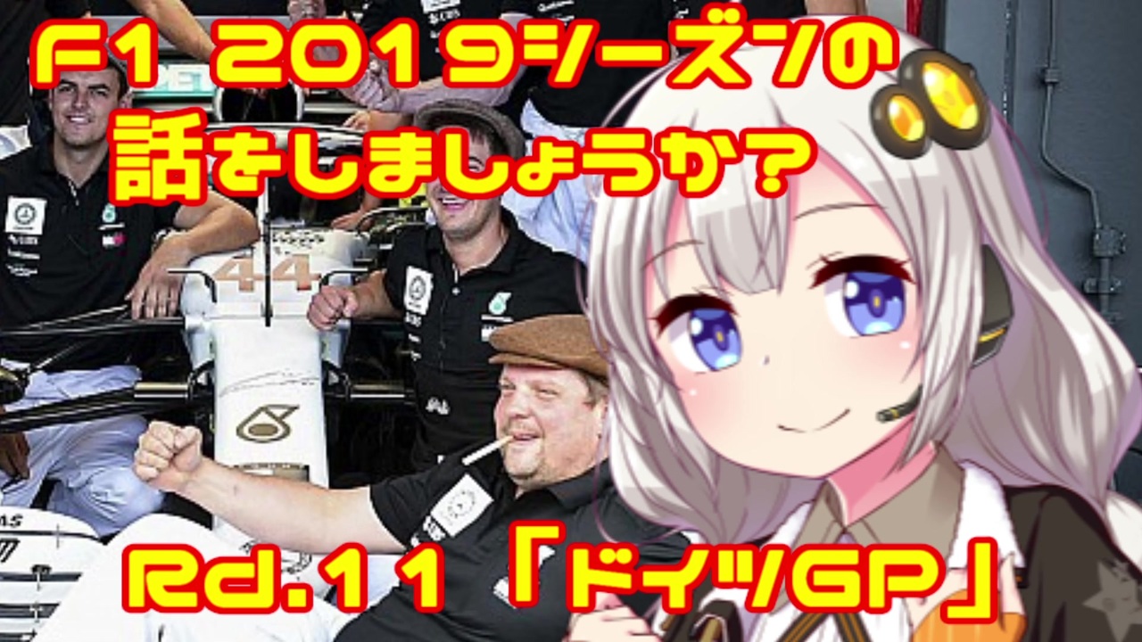 <br><br><span style="color: red; font-size: 24px;">「まさにカオス!!」</span>by 紲星あかり<br><br>おはこんばんちは、紲星あかりです。<br>この動画は、F1 2019シーズンをダイジェストでお送りしています。<br>第11回目は第11戦・ドイツGPです。<br>モータースポーツ125周年で祝賀ムードに包まれた母国GPのメルセデス。このメモリアルレースでチームは勝利を飾ることができたのでしょうか?<br><br><br><span style="color: red;">(ご注意)この動画の情報は真実とは限りません。また、誤字・脱字が含まれる場合があります。ご了承ください。</span><br><br><br>前→第10戦・イギリスGP <a href="https://www.nicovideo.jp/watch/sm35410706" class="watch">sm35410706</a><br>次→第12戦・ハンガリーGP <a href="https://www.nicovideo.jp/watch/sm35501251" class="watch">sm35501251</a><br><br>F12019シーズンの話をしましょうか?マイリスト→<a href="https://www.nicovideo.jp/mylist/64678414" target="_blank" rel="noopener">mylist/64678414</a><br><br>うp主のF1動画シリーズ<br>F12018シーズンの話をしましょうか?マイリスト<span style="color: #000000; font-size: 13px;">→</span><a href="https://www.nicovideo.jp/mylist/61514606" target="_blank" rel="noopener">mylist/61514606</a><br>F1の話をしましょうか?マイリスト→<a href="https://www.nicovideo.jp/mylist/40499353" target="_blank" rel="noopener">mylist/40499353</a><br>F1の話をしましょうか?OPフルバージョン→<a href="https://www.nicovideo.jp/mylist/59030210" target="_blank" rel="noopener">mylist/59030210</a><br>F1 CM集→<a href="https://www.nicovideo.jp/mylist/57297507" target="_blank" rel="noopener">mylist/57297507</a><br><br>