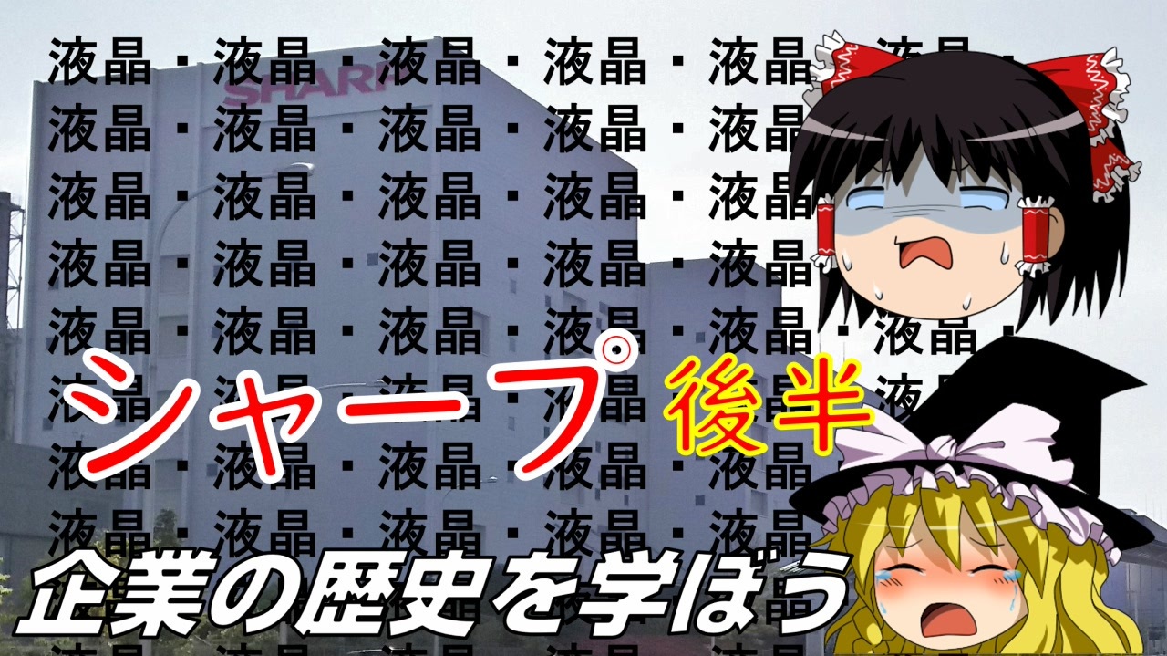 どうも係長です。<br><br>あの3D液晶スマホはなんだったんだ・・・?<br><br>今回はシャープの創業から経営危機までを解説致します。<br>後半は経営危機に至った経緯が中心となります。<br>前半→<a href="https://www.nicovideo.jp/watch/sm35475781" class="watch">sm35475781</a><br><br><span style="font-size: 13px;">シリーズマイリスト→<a href="https://www.nicovideo.jp/mylist/57858797" target="_blank" rel="noopener">mylist/57858797</a></span><br>今までの→<a href="https://www.nicovideo.jp/mylist/36776704" target="_blank" rel="noopener">mylist/36776704</a><br />ニコニコチャンネル始めました!!→<a href="https://ch.nicovideo.jp/cakachannel" target="_blank" rel="noopener nofollow">https://ch.nicovideo.jp/cakachannel</a> <br><br><span style="font-size: 13px;">Youtubuチャンネル(先行配信)→ <a href="https://goo.gl/fD5iYe" target="_blank" rel="noopener nofollow">https://goo.gl/fD5iYe</a></span><br>Youtubeサブチャンネル(VTuber配信)→<a href="https://bit.ly/2nQnNrQ" target="_blank" rel="noopener nofollow">https://bit.ly/2nQnNrQ</a><br>Youtubeゲームチャンネル→<a href="https://bit.ly/2oCMQz2" target="_blank" rel="noopener nofollow">https://bit.ly/2oCMQz2</a><br><span style="color: #000000; font-size: 13px;">X:(雑談・更新情報・なんかあれば等)→<a href="https://twitter.com/cakari14" target="_blank" rel="noopener nofollow">https://twitter.com/cakari14</a></span><br>ブログ→<a href="http://www.cakaricho.com/" target="_blank" rel="noopener nofollow">http://www.cakaricho.com/</a><br>コミュニティ→co1975392
