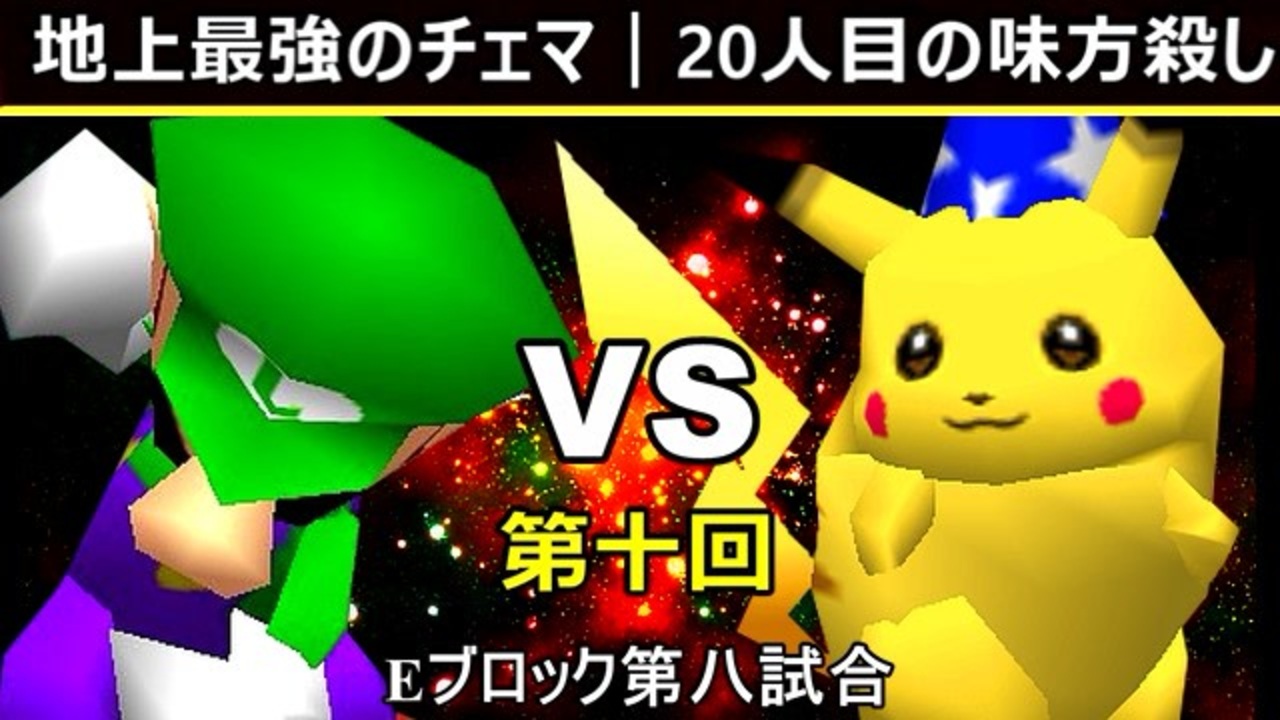 チェマの好調はいつまで続くのか<br>※どちらが勝つかアンケ結果(Twitter調べ) <br>地上最強のチェマ(LU) 41% VS 20人目の味方殺し(PI) 59%<br><br><span style="color: #ff0000; font-size: 13px;"><u>※プロスマブラーになりました→</u></span><span style="color: #000000; font-size: 13px;"> </span><a href="https://bit.ly/2YJCWYA" target="_blank" rel="noopener nofollow">https://bit.ly/2YJCWYA</a><br><span style="color: #0000ff;"><u>※64スマブラCPUトナメ実況のwikiができた模様</u></span><span style="color: #0000ff;">→</span> <a href="https://wiki3.jp/cpu_64" target="_blank" rel="noopener nofollow">https://wiki3.jp/cpu_64</a><br><br><span style="color: #ff0000; font-size: 24px;"><strong>次→</strong></span>【<a href="https://www.nicovideo.jp/watch/sm35502581" class="watch">sm35502581</a>】※毎日投稿<br><br>前【<a href="https://www.nicovideo.jp/watch/sm35502494" class="watch">sm35502494</a>】 <span style="color: #000000; font-size: 13px;">Eブロック第一試合【</span><span style="color: #006699; font-size: 14px;"><a href="https://www.nicovideo.jp/watch/sm35307744" class="watch">sm35307744</a></span><span style="color: #000000; font-size: 13px;">】</span> Aブロック第一試合【<a href="https://www.nicovideo.jp/watch/sm35254266" class="watch">sm35254266</a>】 <br><span style="color: #000000; font-size: 14px;">第十回選手紹介動画【</span><span style="color: #006699; font-size: 14px;"><a href="https://www.nicovideo.jp/watch/sm35240933" class="watch">sm35240933</a></span><span style="color: #000000; font-size: 14px;">】</span><br>第十回マイリスト【<a href="https://www.nicovideo.jp/mylist/65788927" target="_blank" rel="noopener">mylist/65788927</a>】<br>64スマブラCPUトナメ実況part1まとめ【<a href="https://www.nicovideo.jp/mylist/60846861" target="_blank" rel="noopener">mylist/60846861</a>】<br>その他シリーズ【<a href="https://www.nicovideo.jp/mylist/12965027" target="_blank" rel="noopener">mylist/12965027</a>】<br><br><span style="color: #00bfff;"><strong>Twitter</strong></span>【<a href="https://twitter.com/niconicopppppp" target="_blank" rel="noopener nofollow">https://twitter.com/niconicopppppp</a> 】<br><span style="color: #ff4500;"><strong>チャンネル</strong></span>【<a href="https://ch.nicovideo.jp/p-desu" target="_blank" rel="noopener">ch.nicovideo.jp/p-desu</a>】