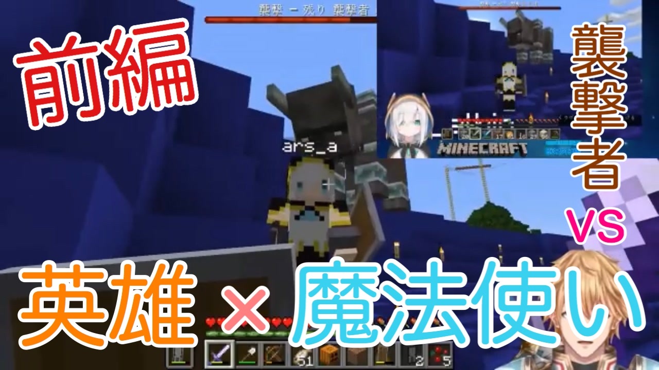 襲撃者イベントという名のデートに誘う魔法使いさん。<br>と、そんな魔法使いのために奔走する英雄さま。<br>そして1時間動画に何の違和感も覚えなくなっていく私。<br><br>後編(<a href="https://www.nicovideo.jp/watch/sm35683184" class="watch">sm35683184</a>)<br><br><br>元配信<br>エクス・アルビオ<br>【マイクラ】初めてのネザーを冒険する!!あと家も爆破する!!【にじさんじ】<br><a href="https://www.youtube.com/watch?v=v2fEmLseRYQ" target="_blank" rel="noopener nofollow">https://www.youtube.com/watch?v=v2fEmLseRYQ</a><br>アルス・アルマル<br>#24【Minecraft】襲撃イベント!!略奪者を倒すよ【アルス・アルマル/にじさんじ】<br><a href="https://www.youtube.com/watch?v=yVj4P5sBoVg" target="_blank" rel="noopener nofollow">https://www.youtube.com/watch?v=yVj4P5sBoVg</a><br><br>マイリスト<br><a href="https://www.nicovideo.jp/mylist/65066436" target="_blank" rel="noopener">mylist/65066436</a><br>