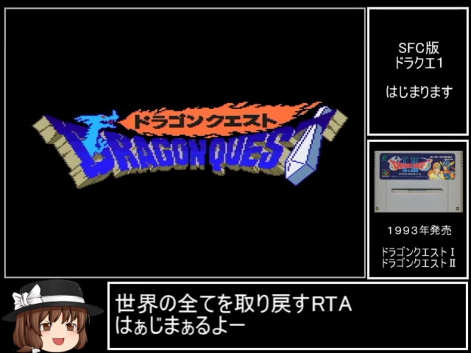 RTAは初投稿です。<br><br>決して早い記録ではないですが、<br>気軽に楽しめるゲームなのでみんなもプレイしよう。<br><br>(追記)<br>マイリストが非公開になってました。今は見れるハズ。<br>初めてなので許してください!<br>それと、たくさんの広告ありがとうございます!<br><br>(さらに追記)<br>当初は倍速処理をせず、ほぼ等速で動画作成予定でした。<br>しかし、どうしても単調な場面が多くなってしまうので<br>思い切って倍速を盛り込んだところパート数が減りました。<br><br>スタート~岩山の洞窟まで<br>part2→<a href="https://www.nicovideo.jp/watch/sm36011781" class="watch">sm36011781</a><br><br><br>この動画で利用している株式会社スクウェア・エニックスを代表とする共同著作者が権利を所有する著作物及びスギヤマ工房有限会社が権利を所有する楽曲の転載・配布は禁止いたします。<br> © 1993 ARMOR PROJECT/BIRD STUDIO/SQUARE ENIX All Rights Reserved.<br> © SUGIYAMA KOBO<br><br><br>ドラクエ1RTA <a href="https://www.nicovideo.jp/mylist/66966609" target="_blank" rel="noopener">mylist/66966609</a><br />RTApart1集 <a href="https://www.nicovideo.jp/mylist/66965194" target="_blank" rel="noopener">mylist/66965194</a><br>通常プレイpart1集 <a href="https://www.nicovideo.jp/mylist/67545233" target="_blank" rel="noopener">mylist/67545233</a><br>単発動画 <a href="https://www.nicovideo.jp/mylist/66997539" target="_blank" rel="noopener">mylist/66997539</a>