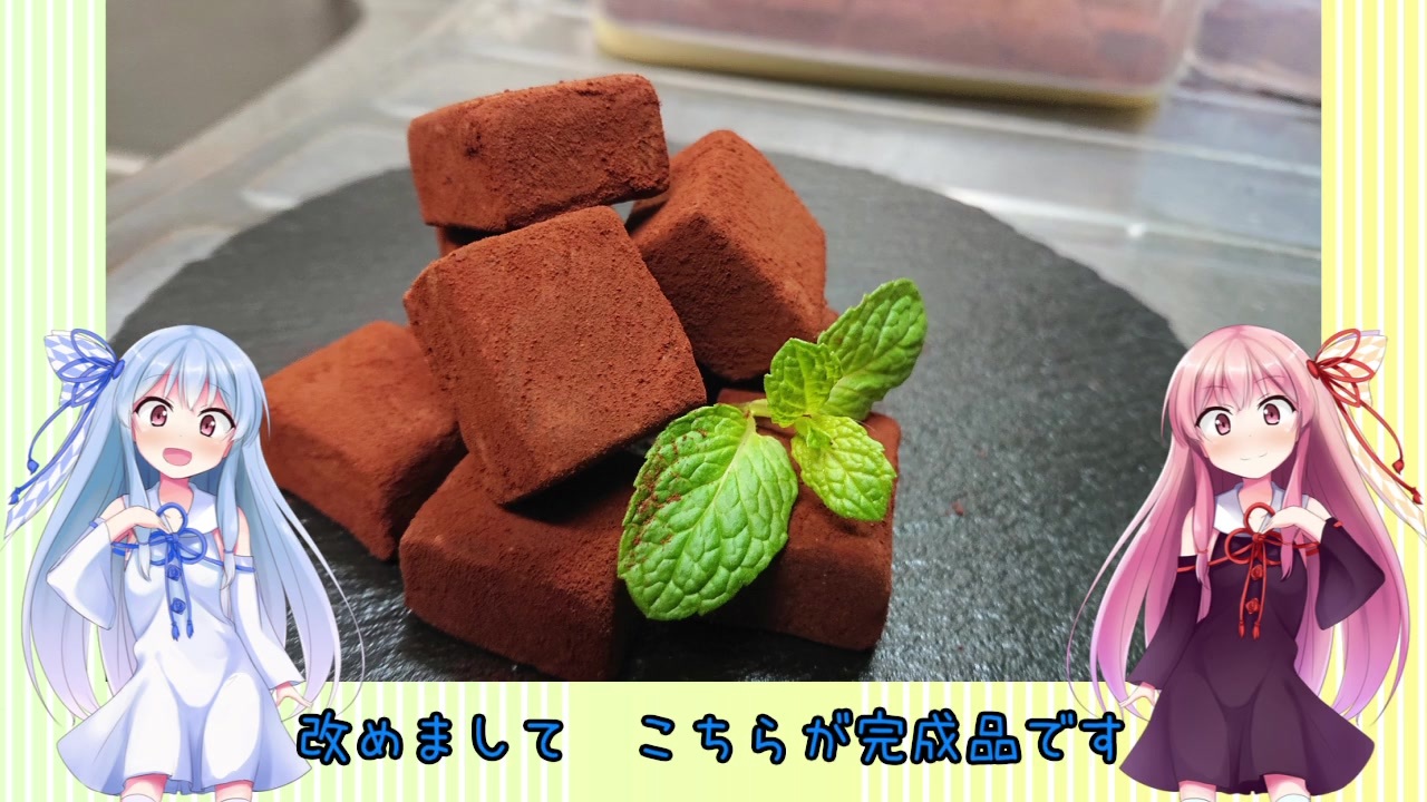 みなさんハッピーバレンタイン<br>生チョコはとても簡単に作れて美味しいので<br>ぜひチャレンジしてみてね<br>材料費は1500円位で動画内の量作れます<br><br>さて、2020.2.11 大田区産業プラザPiO<br>「 この声届け、月までも六 」<br>以前から取り組んでいたレシピカード6枚&描きおろしイラスト1枚の7枚セット<br>委託させていただきます<br>なお、私は通販予定はありません<br>委託場所はジャムしぃさんのところ「<span style="color: #14171a; font-size: 19px;"><strong>C-11</strong></span>」<br>私本人はシヨミフさんのところ「Qー15」<br>当日はよろしくお願いします。<br><br>なお、価格に関して動画でも触れましたが<br>イラスト、印刷 すべてにおいて外注しておりますので<br>どうしても価格が高くなってしまいました・・・申し訳ありません・・・<br>無いとは思いますが、頒布できた数次第では<br>また新しいレシピイラストを発注することもできるかもしれません。<br>ジャムしぃさんの新刊<br><a href="https://www.melonbooks.co.jp/detail/detail.php?product_id=626506" target="_blank" rel="noopener nofollow">https://www.melonbooks.co.jp/detail/detail.php?product_id=626506</a><br><br><br>あと、期限切れの食品の使用は<br>自己責任です・・・・が<br>私は無事でした。<br><br><br>ダークサイドの多い琴葉姉妹に少しでも安らぎを<br>そして、見てくださる皆様に飯テロを<br>そんな動画です。<br><br><br><br>前回 <a href="https://www.nicovideo.jp/watch/sm36130687" class="watch">sm36130687</a> 次回 <a href="https://www.nicovideo.jp/watch/sm36566403" class="watch">sm36566403</a> 食べ盛りマイリス <a href="https://www.nicovideo.jp/mylist/58658663" target="_blank" rel="noopener">mylist/58658663</a> <br>ツイッター @higanbananosaku<br><br>残り投稿可能本数 1本