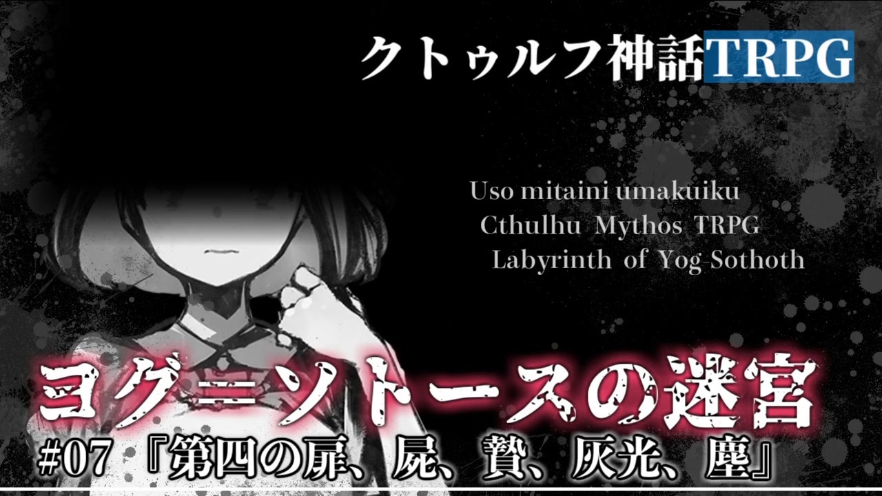 最後の扉のその先には……。<br><br><span style="color: #ff0000; font-size: 18px;"><strong>エアコミケおつかれさまでした!</strong></span>新刊情報はこちら!(<span style="color: #000000; font-size: 14px;"><a href="https://ch.nicovideo.jp/article/ar1571822" target="_blank" rel="noopener">ar1571822</a></span>)(<a href="https://www.nicovideo.jp/watch/sm36775804" class="watch">sm36775804</a>)<br><br>※1:「ヨグ=ソトースの迷宮」はうそうま卓の同人誌1巻にシナリオ・リプレイが掲載されているものです。先の展開のネタバレはお控えください。<br>※2:↑なんですけど、同人誌掲載シナリオと本動画はちょっと内容が違います。プロトタイプだから!<br><span style="color: #000000; font-size: 14px;">1巻電子版 <a href="https://usouma.booth.pm/items/822663" target="_blank" rel="noopener nofollow">https://usouma.booth.pm/items/822663</a><br>ヨグ=ソトースの迷宮単品 </span><a href="https://usouma.booth.pm/items/822697" target="_blank" rel="noopener nofollow">https://usouma.booth.pm/items/822697</a><br><br>前:<a href="https://www.nicovideo.jp/watch/sm36811026" class="watch">sm36811026</a> / 次:(8話:5/8)<br />【 うそうま卓シナリオ等まとめ:<a href="https://usouma.booth.pm/" target="_blank" rel="noopener nofollow">https://usouma.booth.pm/</a> 】<br><br>マイリスト:<a href="https://www.nicovideo.jp/mylist/57250859" target="_blank" rel="noopener">mylist/57250859</a> <a href="https://www.nicovideo.jp/mylist/67175059" target="_blank" rel="noopener">mylist/67175059</a><br>ツイッター <a href="https://twitter.com/shitouba_trpg" target="_blank" rel="noopener nofollow">https://twitter.com/shitouba_trpg</a><br>連絡先 usouma1010@gmail.com<br><br>クトゥルフ神話TRPG<br>第1チーム立ち絵:転(くるり)さん <a href="https://twitter.com/kururirura" target="_blank" rel="noopener nofollow">https://twitter.com/kururirura</a><br>第2チーム立ち絵:茨乃(しの)さん <a href="https://twitter.com/sino_eefy" target="_blank" rel="noopener nofollow">https://twitter.com/sino_eefy</a><br>第3チーム立ち絵:スイさん <a href="https://twitter.com/moe_sui" target="_blank" rel="noopener nofollow">https://twitter.com/moe_sui</a><br>
