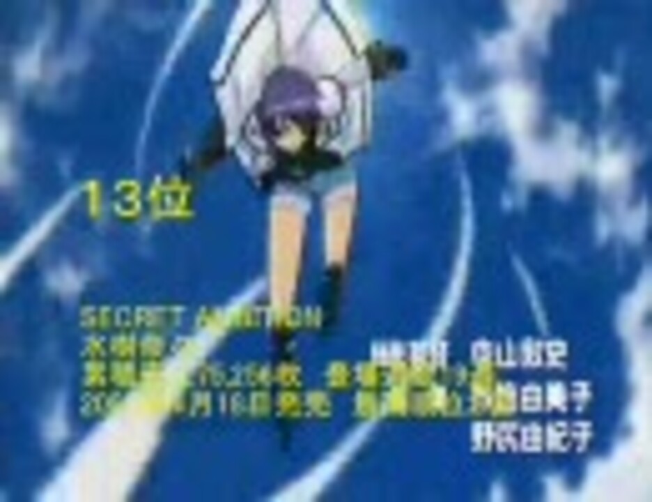 ラストで30位からです。 ※集計期間は2003年以降発売曲で2008年5月25日までです。 その1→<a href="https://www.nicovideo.jp/watch/sm3530779" class="watch">sm3530779</a>、その2→<a href="https://www.nicovideo.jp/watch/sm3565454" class="watch">sm3565454</a>、その3→<a href="https://www.nicovideo.jp/watch/sm3593108" class="watch">sm3593108</a>、その4→<a href="https://www.nicovideo.jp/watch/sm3625612" class="watch">sm3625612</a>、その5→<a href="https://www.nicovideo.jp/watch/sm3659079" class="watch">sm3659079</a>、その6→<a href="https://www.nicovideo.jp/watch/sm3696938" class="watch">sm3696938</a>、番外編→<a href="https://www.nicovideo.jp/watch/sm3791922" class="watch">sm3791922</a>追記 2009/1/15 2000年代TOP1000 その1→<a href="https://www.nicovideo.jp/watch/sm5852682" class="watch">sm5852682</a>、 月間ランキング編→<a href="https://www.nicovideo.jp/watch/sm7280179" class="watch">sm7280179</a>
