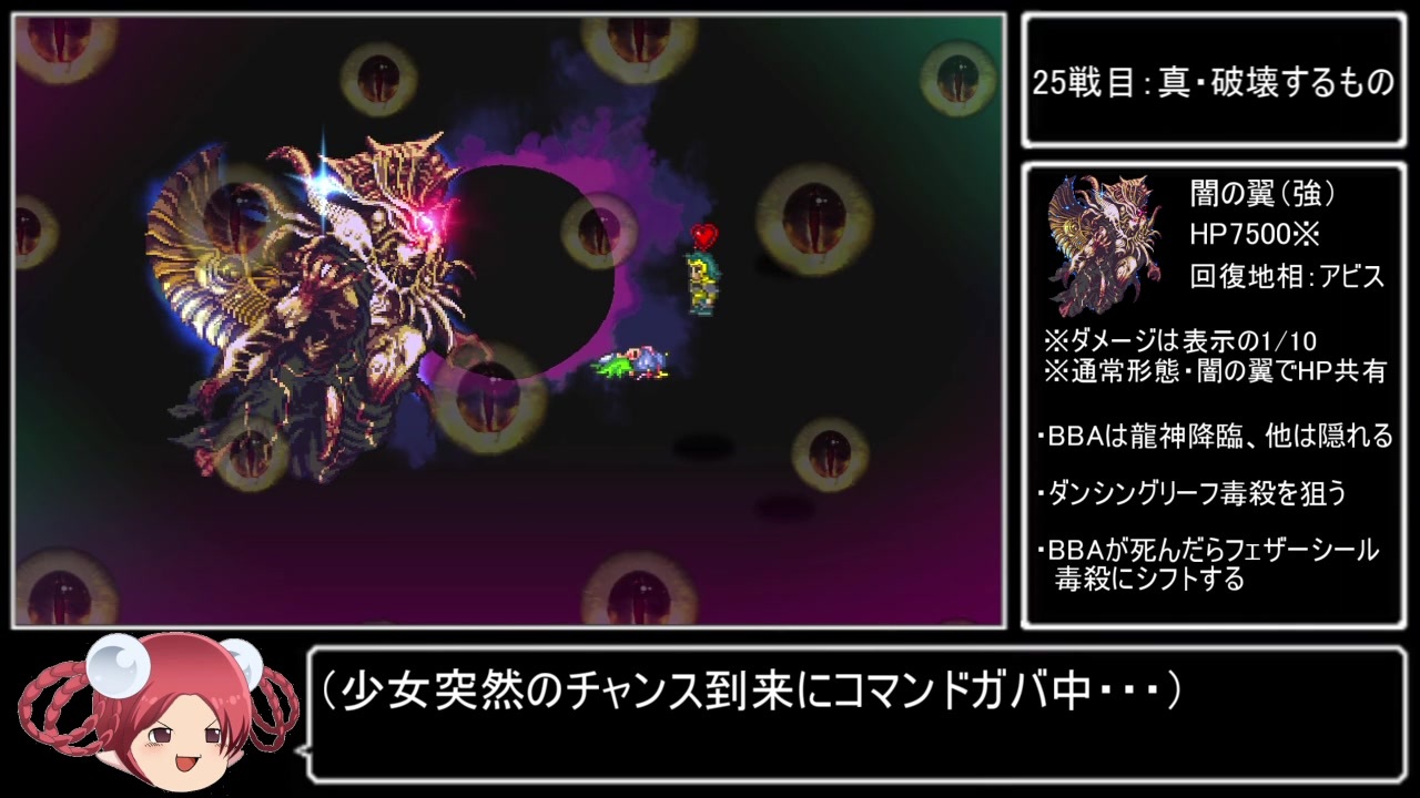 プレイ条件<br>1. 真・最少勝利回数クリア(退却・敗北なし)<br>2. 宝箱は回収しない<br>3. コマンダーモード・分身技・指輪転がしなし<br>4. 編集は頑張らない<br>※バグやサブフレームリセットを利用した戦闘回数削減はなし<br><br><a href="https://www.nicovideo.jp/watch/sm37502038" class="watch">sm37502038</a>←part7|part1→<a href="https://www.nicovideo.jp/watch/sm37231834" class="watch">sm37231834</a><br>再生リスト→<a href="https://www.nicovideo.jp/mylist/69126940" target="_blank" rel="noopener">mylist/69126940</a><br>おやつカンパニー(ニコ生)→co551055<br>生放送のアーカイブはこちら→<a href="https://www.youtube.com/playlist?list=PLrkOMyVpbtkeU5mpGfTc7sj6G_PXVsW57" target="_blank" rel="noopener nofollow">https://www.youtube.com/playlist?list=PLrkOMyVpbtkeU5mpGfTc7sj6G_PXVsW57</a><br><br>他の挑戦シリーズとか→<a href="https://www.nicovideo.jp/mylist/3220744" target="_blank" rel="noopener">mylist/3220744</a> <br>YouTube版→<a href="https://goo.gl/oey5Y7" target="_blank" rel="noopener nofollow">https://goo.gl/oey5Y7</a><br><br>© 1995, 2019 SQUARE ENIX CO., LTD. All Rights Reserved. Planned & Developed by ArtePiazza ILLUSTRATION: TOMOMI KOBAYASHI 当該作品の転載・配布は禁止いたします。<br><br>