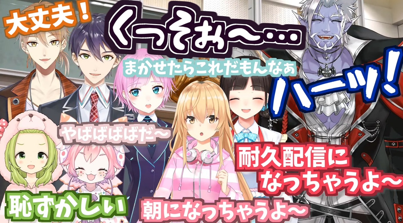草<br>森中花咲<br><a href="https://www.youtube.com/channel/UCtpB6Bvhs1Um93ziEDACQ8g?sub_confirmation=1" target="_blank" rel="noopener nofollow">https://www.youtube.com/channel/UCtpB6Bvhs1Um93ziEDACQ8g?sub_confirmation=1</a><br>家長むぎ<br><a href="https://www.youtube.com/channel/UC_GCs6GARLxEHxy1w40d6VQ?sub_confirmation=1" target="_blank" rel="noopener nofollow">https://www.youtube.com/channel/UC_GCs6GARLxEHxy1w40d6VQ?sub_confirmation=1</a><br>宇志海いちご<br><a href="https://www.youtube.com/channel/UCmUjjW5zF1MMOhYUwwwQv9Q?sub_confirmation=1" target="_blank" rel="noopener nofollow">https://www.youtube.com/channel/UCmUjjW5zF1MMOhYUwwwQv9Q?sub_confirmation=1</a><br>ギルザレンIII世<br><a href="https://www.youtube.com/channel/UCUzJ90o1EjqUbk2pBAy0_aw?sub_confirmation=1" target="_blank" rel="noopener nofollow">https://www.youtube.com/channel/UCUzJ90o1EjqUbk2pBAy0_aw?sub_confirmation=1</a> <br>剣持刀也<br><a href="https://www.youtube.com/channel/UCv1fFr156jc65EMiLbaLImw?sub_confirmation=1" target="_blank" rel="noopener nofollow">https://www.youtube.com/channel/UCv1fFr156jc65EMiLbaLImw?sub_confirmation=1</a> <br>鈴鹿詩子<br><a href="https://www.youtube.com/channel/UCwokZsOK_uEre70XayaFnzA?sub_confirmation=1" target="_blank" rel="noopener nofollow">https://www.youtube.com/channel/UCwokZsOK_uEre70XayaFnzA?sub_confirmation=1</a><br>伏見ガク<br><a href="https://www.youtube.com/channel/UCXU7YYxy_iQd3ulXyO-zC2w?sub_confirmation=1" target="_blank" rel="noopener nofollow">https://www.youtube.com/channel/UCXU7YYxy_iQd3ulXyO-zC2w?sub_confirmation=1</a><br>文野環(野良猫)<br><a href="https://www.youtube.com/channel/UCBiqkFJljoxAj10SoP2w2Cg?sub_confirmation=1" target="_blank" rel="noopener nofollow">https://www.youtube.com/channel/UCBiqkFJljoxAj10SoP2w2Cg?sub_confirmation=1</a><br>物述有栖<br><a href="https://www.youtube.com/channel/UCt0clH12Xk1-Ej5PXKGfdPA?sub_confirmation=1" target="_blank" rel="noopener nofollow">https://www.youtube.com/channel/UCt0clH12Xk1-Ej5PXKGfdPA?sub_confirmation=1</a><br>夕陽リリ<br><a href="https://www.youtube.com/channel/UC48jH1ul-6HOrcSSfoR02fQ?sub_confirmation=1" target="_blank" rel="noopener nofollow">https://www.youtube.com/channel/UC48jH1ul-6HOrcSSfoR02fQ?sub_confirmation=1</a><br><br>▼元動画<br>【緊急企画】急遽二期生出身に招集かけたら何人集まるか?【にじさんじ所属】(2020/10/3)<br><a href="https://www.youtube.com/watch?v=wDDAGJ9N7dY" target="_blank" rel="noopener nofollow">https://www.youtube.com/watch?v=wDDAGJ9N7dY</a><br>・該当箇所(1:29:50~)<br><a href="https://www.youtube.com/watch?v=wDDAGJ9N7dY&feature=youtu.be&t=5390" target="_blank" rel="noopener nofollow">https://www.youtube.com/watch?v=wDDAGJ9N7dY&feature=youtu.be&t=5390</a><br>・該当箇所(1:53:13~)<br><a href="https://www.youtube.com/watch?v=wDDAGJ9N7dY&feature=youtu.be&t=6793" target="_blank" rel="noopener nofollow">https://www.youtube.com/watch?v=wDDAGJ9N7dY&feature=youtu.be&t=6793</a>