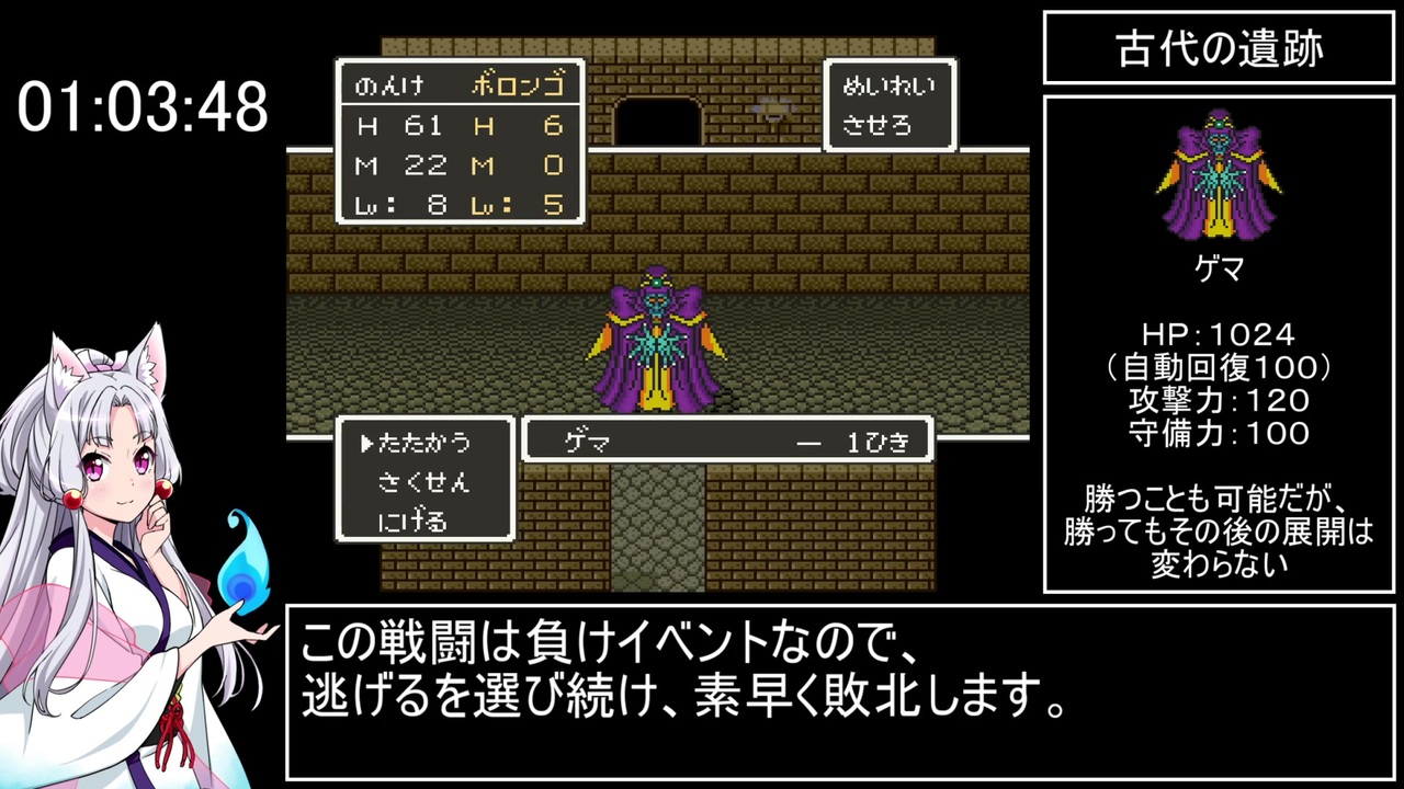 <span style="color: #000000; font-size: 14px;">RTA第9弾です</span><br><br>part2 <a href="https://www.nicovideo.jp/watch/sm37613222" class="watch">sm37613222</a><br><span style="color: #000000; font-size: 14px;">part4 </span><a href="https://www.nicovideo.jp/watch/sm37684636" class="watch">sm37684636</a><br><br>この動画で利用している株式会社スクウェア・エニックスを代表とする共同著作者が権利を所有する著作物及びスギヤマ工房有限会社が権利を所有する楽曲の転載・配布は禁止いたします。<br>© 1992 ARMOR PROJECT/BIRD STUDIO/SPIKE CHUNSOFT/SQUARE ENIX All Rights Reserved.<br>© SUGIYAMA KOBO<br><br /><br>YouTubeにも投稿してます<br><a href="https://www.youtube.com/@chamame_t" target="_blank" rel="noopener nofollow">https://www.youtube.com/@chamame_t</a><br><br>ツイッター始めました<br><a href="https://twitter.com/chamame_t" target="_blank" rel="noopener nofollow">https://twitter.com/chamame_t</a><br><br>RTA part1リンク<br><a href="https://www.nicovideo.jp/mylist/73242230" target="_blank" rel="noopener">mylist/73242230</a><br>東北姉妹とレトロゲーム part1リンク<br><a href="https://www.nicovideo.jp/mylist/73242072" target="_blank" rel="noopener">mylist/73242072</a>