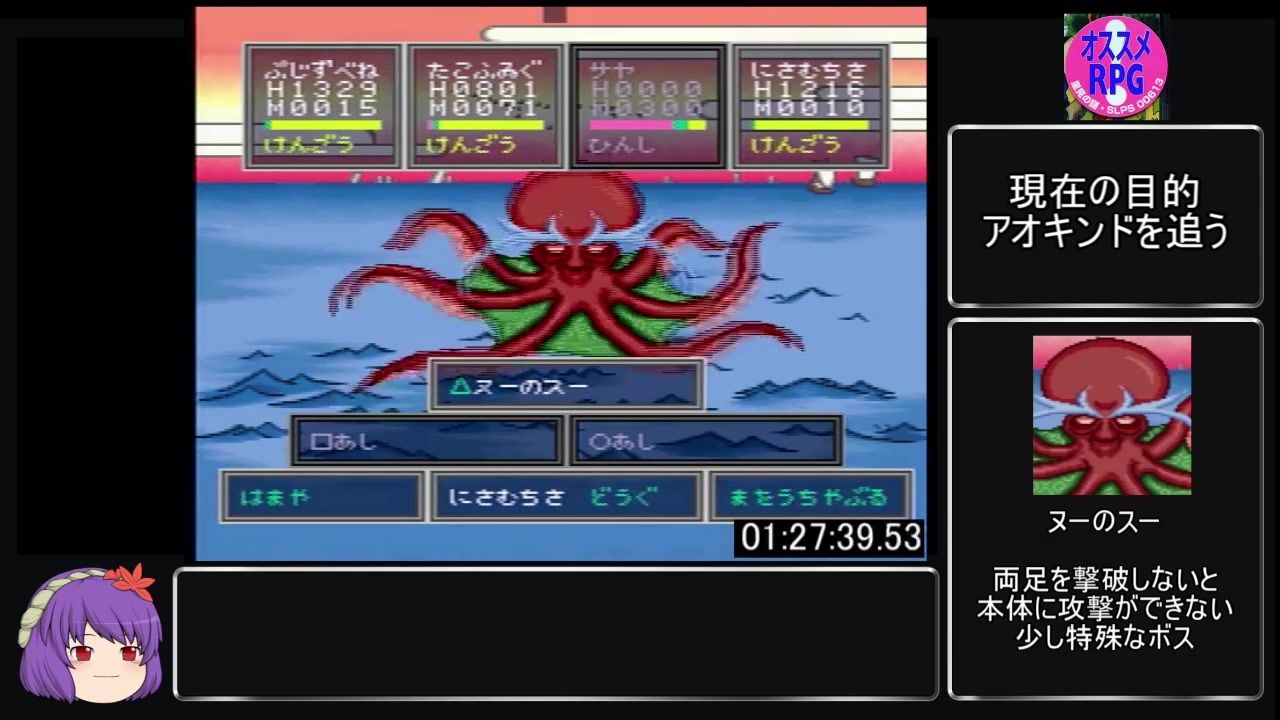 今回のRTAで編集技術やトークの引き出しの無さを痛感しましたので、今後も頑張っていこうと思い初投稿です。<br><br>計測区間:ゲームスタートを押したところからEDのTo Be Continuedの文字がストップする所まで<br><br>環境:PlayStation 2 SCPH-90000、高速読み込み使用 GV-USB2を使用し、画面を分配せずにプレイ<br><br>今回、チャート構築に先駆者であるばくぜろ様のチャートや動画を参考に作成いたしました。<br>ここでお礼を申し上げておきます。ありがとうございます!!<br><br>二年ほど前から環境が大きく変わり、動画編集の設定等も大幅に変わりました。<br>ご了承ください。<br><br>北の大陸 ~ ヒの村まで<br><br>memeso さん、夕乃 さん、ぽぽいあ さん、ぱんだぁ さん、GLIDE さん、狼藉者 さん、ふわふわさん さん、ハンバーガー さん、みかどいしへんおとねずみやまねこ さん、GUS さん<br>広告、ありがとうございます!<br><br>part2→<a href="https://www.nicovideo.jp/watch/sm37661869" class="watch">sm37661869</a> part4→<a href="https://www.nicovideo.jp/watch/sm37662021" class="watch">sm37662021</a><br><br>マイリスト <a href="https://www.nicovideo.jp/mylist/61457195" target="_blank" rel="noopener">mylist/61457195</a>