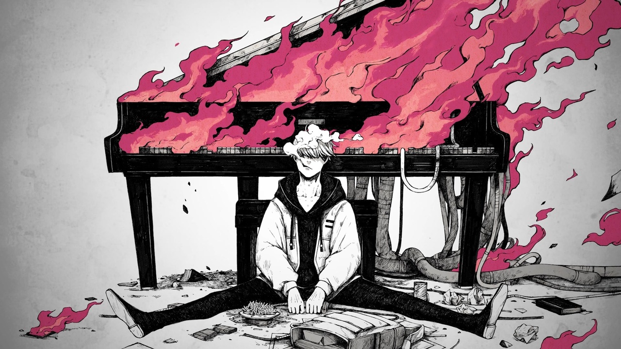 music FLG4<br><br>(<a href="https://www.nicovideo.jp/mylist/65804159" target="_blank" rel="noopener">mylist/65804159</a>)<br><br>[Youtube] <a href="https://www.youtube.com/channel/UCz27kRnxA0FVzYZBm-KiH_g/" target="_blank" rel="noopener nofollow">https://www.youtube.com/channel/UCz27kRnxA0FVzYZBm-KiH_g/</a><br>[twitter] <a href="https://twitter.com/FLG4_Music" target="_blank" rel="noopener nofollow">https://twitter.com/FLG4_Music</a><br>[オフボーカル] <a href="https://piapro.jp/flg4" target="_blank" rel="noopener nofollow">https://piapro.jp/flg4</a><br>[たまに更新する歌ってみたチャンネル] <a href="https://www.youtube.com/channel/UCaAmua9OT1dzKzRJZ7XqZLg" target="_blank" rel="noopener nofollow">https://www.youtube.com/channel/UCaAmua9OT1dzKzRJZ7XqZLg</a><br><br>illust 田ヶ喜一<br>[Twitter] <a href="https://twitter.com/nico_taga" target="_blank" rel="noopener nofollow">https://twitter.com/nico_taga</a><br><br><br>【歌詞】<br><br>Fallin' 化かし合いの街<br>盲信 ただDeadman walkin'<br>同情はいらない 猿芝居 これも幸せ<br>探すよWi-Fi 笑うよ傀儡<br>乾いたアスファルト(ほら)<br>フィクションに魅せられたネズミが袋小路<br><br>白黒じゃ収まらない葛藤<br>真面目な奴が馬鹿をみる<br><br>クラクラ<br>クラッシュした胸の真芯と<br>プラプラ<br>プラスチックのようなプライドは<br>いつになれば<br>欠けた僕を 元に戻すの<br>大体ちゃちな夢も見尽くして<br>上海蟹にも飽きた頃だろ<br>いっそ いっそ<br>赤い実食べてみようか<br><br>見透かされた軽薄<br>いつから麻痺してるんだろう<br>燃えカスのように 燻ぶったまま<br>生きている<br>それでも書き続けんだって<br>芸術とかうるせぇだけ<br>これしか生きる術を知らない<br><br>誰のために歯を食いしばんの<br>金のためなら死んでもいい<br><br>哀しいな 打算だけの人生<br>身を削っても軽さ出ちゃって<br>大馬鹿になって<br>全て忘れて踊らにゃ損損<br>ねじ切れた夢の国<br>死体の山の頂<br>行き着く先で愚か者の舌を抜こうか<br><br>クラクラ<br>クラッシュした胸の真芯と<br>プラプラ<br>プラスチックのようなプライドは<br>いつになれば<br>欠けた僕を 元に戻すの<br>幸いまだ生きてるこの意味って<br>案外惨めなことじゃないでしょ<br>きっと きっと<br>いやダメだなやっぱ<br><br>大馬鹿になって<br>全て忘れて踊らにゃ損損<br>嗚呼 ノミの心臓<br>今日も今日とて右往左往