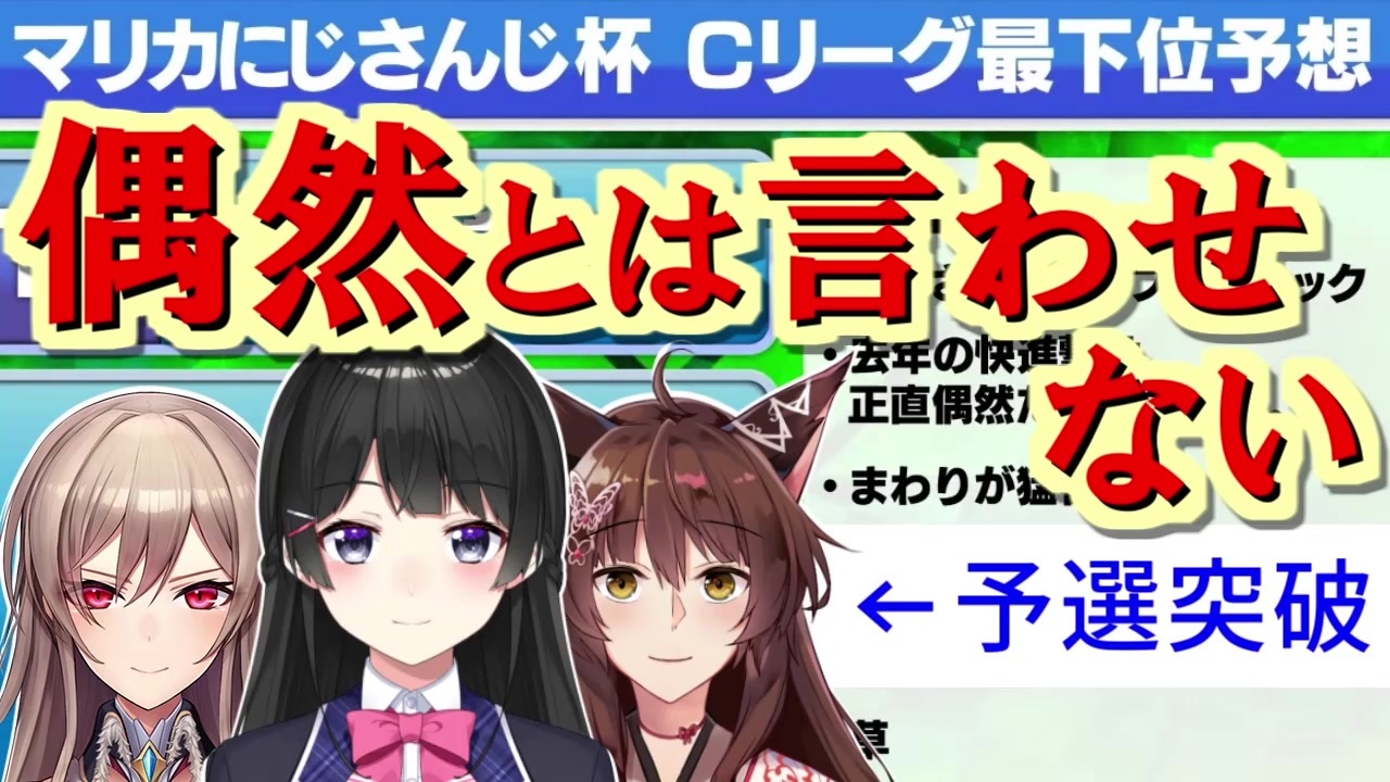 フミさんとか巴様とか・・・本当に感動しました<br>本選も皆がんばれ!<br><br>YouTube版<br><a href="https://youtu.be/vpFIwKyZ-Xg" target="_blank" rel="noopener nofollow">https://youtu.be/vpFIwKyZ-Xg</a><br><br>元動画<br>【マリオカート8DX】第3回マリオカートにじさんじ杯 予選【#マリカにじさんじ杯】<br><a href="https://www.youtube.com/watch?v=s6JFLeSju48" target="_blank" rel="noopener nofollow">https://www.youtube.com/watch?v=s6JFLeSju48</a><br>【#マリカにじさんじ杯】Aリーグ フレン視点:勝つぞ!!【フレン・E・ルスタリオ/にじさんじ】<br><a href="https://www.youtube.com/watch?v=a_RCZbt-aS8" target="_blank" rel="noopener nofollow">https://www.youtube.com/watch?v=a_RCZbt-aS8</a><br>【マリオカート8DX】Aブロック予選。よそ見しません!!!!!【#マリカにじさんじ杯/白雪 巴】<br><a href="https://www.youtube.com/watch?v=1xArpm0BfOU" target="_blank" rel="noopener nofollow">https://www.youtube.com/watch?v=1xArpm0BfOU</a><br>【 #マリカにじさんじ杯 】氷水用意しました【 にじさんじ / グウェル・オス・ガール 】<br><a href="https://www.youtube.com/watch?v=xkXonswqHyU" target="_blank" rel="noopener nofollow">https://www.youtube.com/watch?v=xkXonswqHyU</a><br>【Cグループ】#マリカにじさんじ杯 がんばる 【にじさんじ/月ノ美兎】<br><a href="https://www.youtube.com/watch?v=M1mPIHa-mfI" target="_blank" rel="noopener nofollow">https://www.youtube.com/watch?v=M1mPIHa-mfI</a><br>【#第3回マリカにじさんじ杯練習】予選大会Dグループ【にじさんじ/レヴィ・エリファ】<br><a href="https://www.youtube.com/watch?v=Kz6ZeTk2Cls" target="_blank" rel="noopener nofollow">https://www.youtube.com/watch?v=Kz6ZeTk2Cls</a><br>【マリオカート8DX】我枠【#マリカにじさんじ杯】<br><a href="https://www.youtube.com/watch?v=986E2BiG0S8" target="_blank" rel="noopener nofollow">https://www.youtube.com/watch?v=986E2BiG0S8</a><br>【第3回マリカにじさんじ杯】剣持視点【僕はハッピートリガー】<br><a href="https://www.youtube.com/watch?v=kiGVvGErvH4" target="_blank" rel="noopener nofollow">https://www.youtube.com/watch?v=kiGVvGErvH4</a><br>【#マリカにじさんじ杯】予選G!!!【シェリン/にじさんじ】<br><a href="https://www.youtube.com/watch?v=MOmBKvKY8RM" target="_blank" rel="noopener nofollow">https://www.youtube.com/watch?v=MOmBKvKY8RM</a>