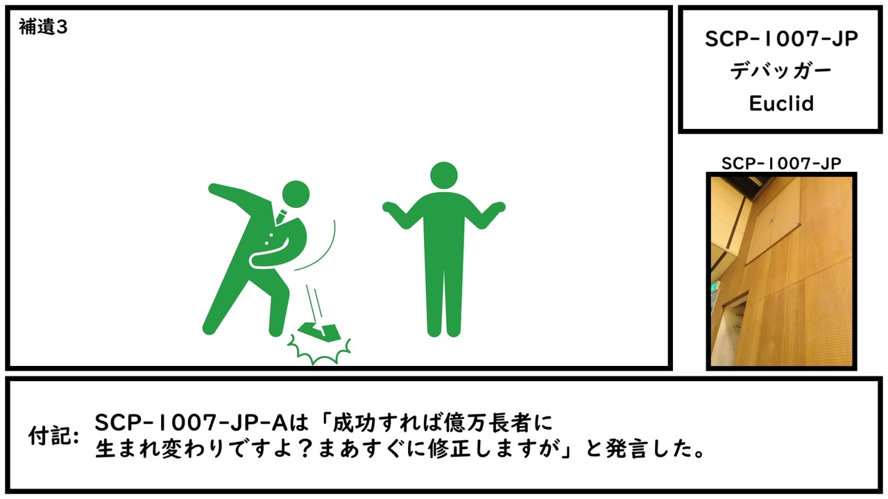 現実はゲームみたいなものだ。<br><br>本家記事 <a href="http://scp-jp.wikidot.com/scp-1007-jp" target="_blank" rel="noopener nofollow">http://scp-jp.wikidot.com/scp-1007-jp</a><br>作者 EFU<br>SCP財団 <a href="http://scp-jp.wikidot.com" target="_blank" rel="noopener nofollow">http://scp-jp.wikidot.com</a><br>過去の動画はこちら <a href="https://www.nicovideo.jp/mylist/67620202" target="_blank" rel="noopener">mylist/67620202</a><br>CC-BY-SA 3.0<br>